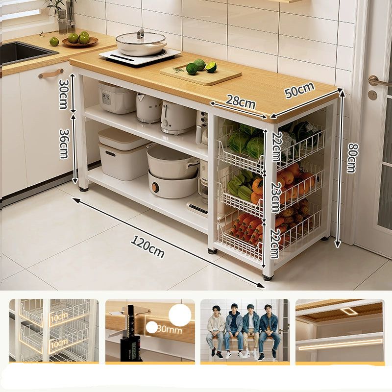 NNETB 3-Layer Kitchen Storage Rack with Cutting Workbench