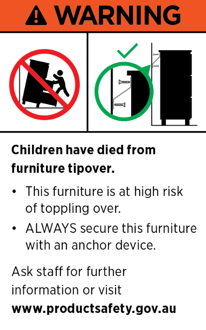 ALWAYS secure this furniture with an anchor device.