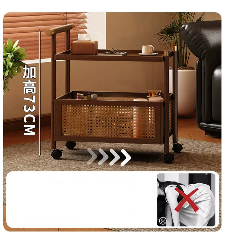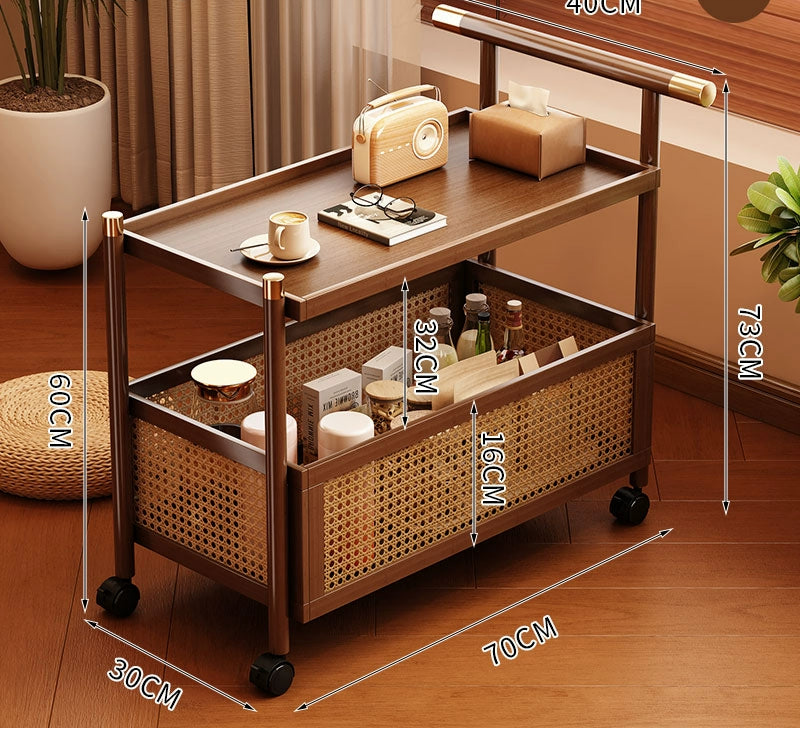 NNETB 2-Layer Bamboo Trolley Side Table 70cm Movable Walnut