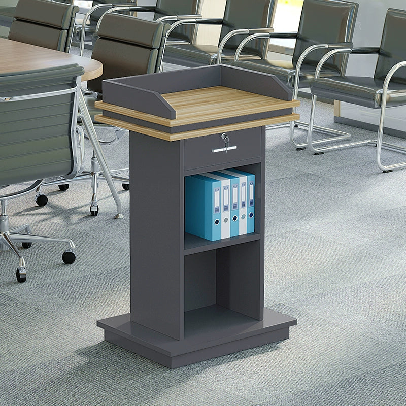 The NNETB Grille Podium Table combines refined design and functional mobility to deliver a standout presence in any setting. Finished in high-grade gray with a light walnut grille accent, it offers a professional appearance perfect for host stands, speaker platforms, or reception desks. With no stool included and no custom logo support, this ready-to-use piece is ideal for classrooms, seminars, or shopping guide setups.