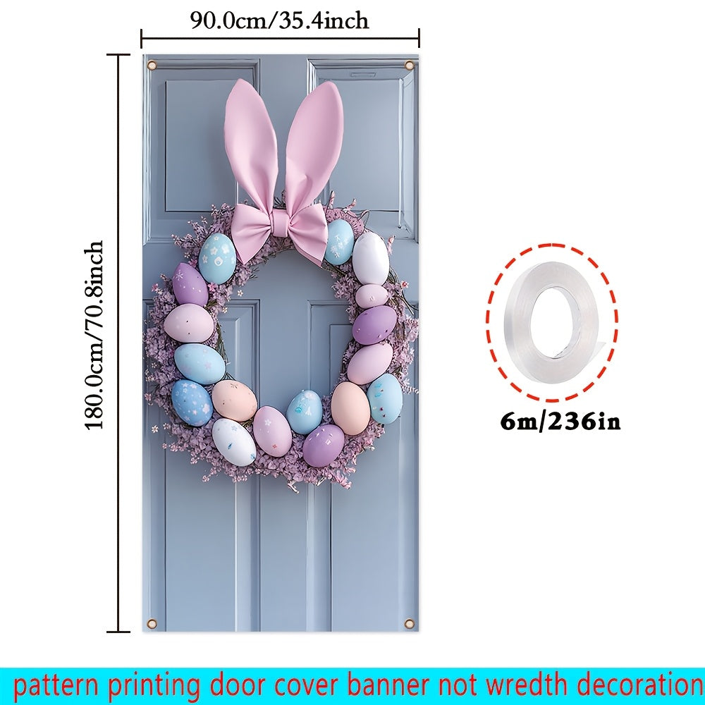 Description: The NNETM Bunny Ears & Easter Egg Wreath is the perfect addition to your spring and Easter decorations. With vibrant mixed colors, a flat print design, and a playful pink bow, this wreath brightens any entryway. Ideal for Easter, spring celebrations, and even summer events, it adds a welcoming charm to your home. The wreath is made from durable polyester, ensuring it stays vibrant season after season. Refer to the image for precise dimensions and details.