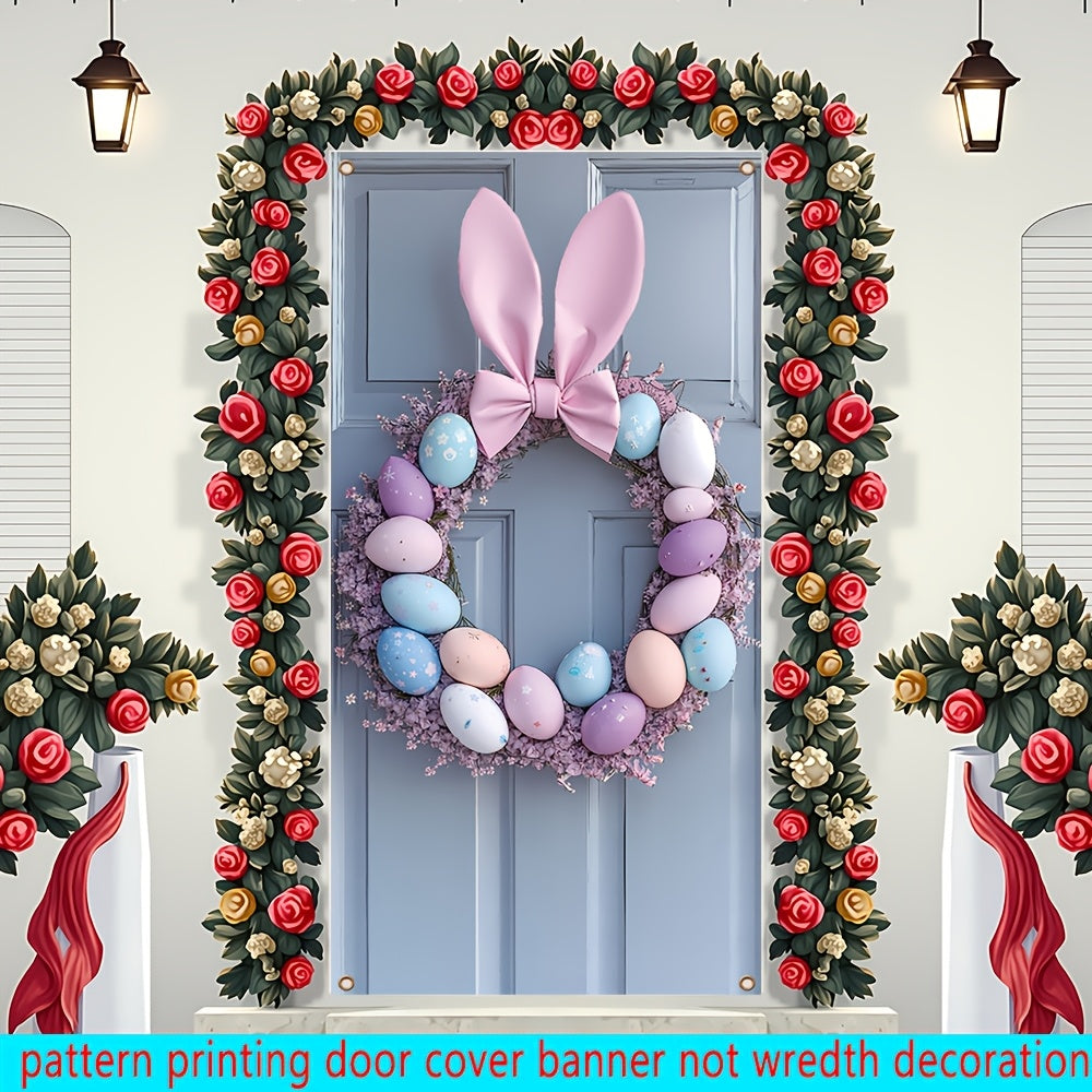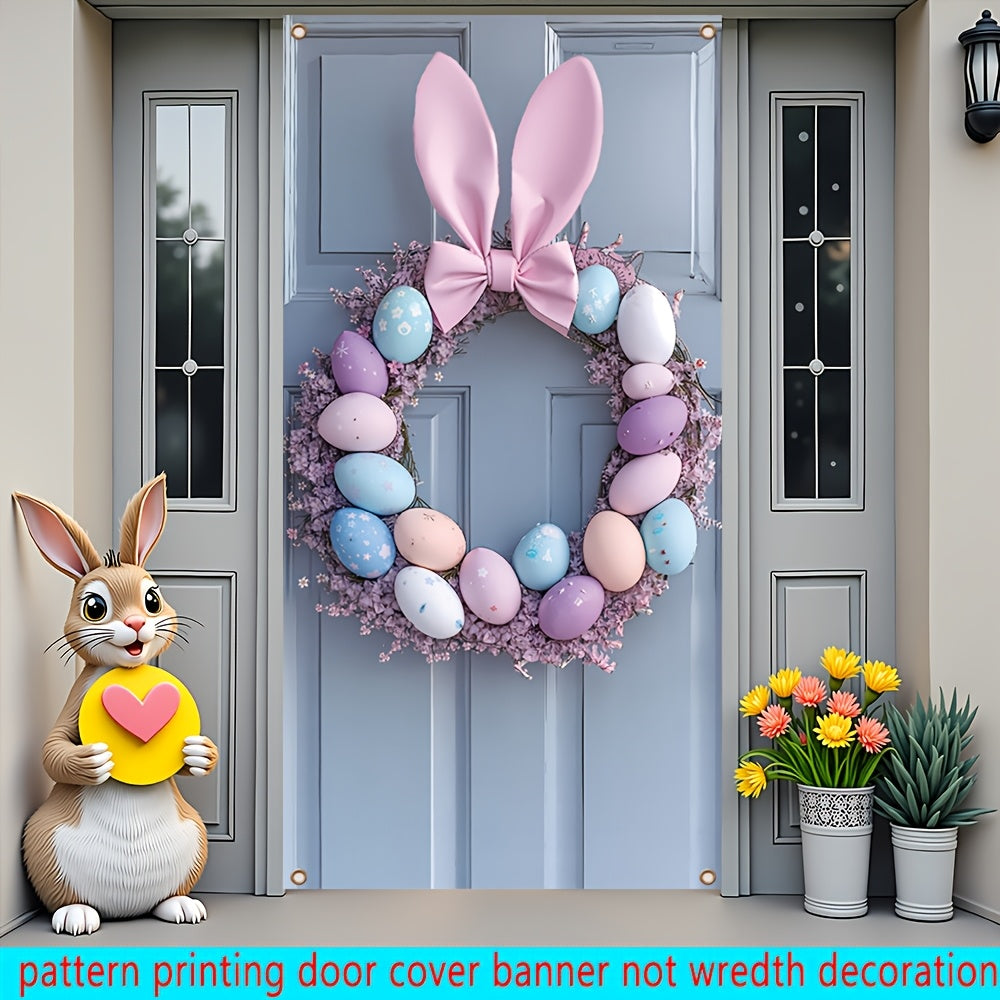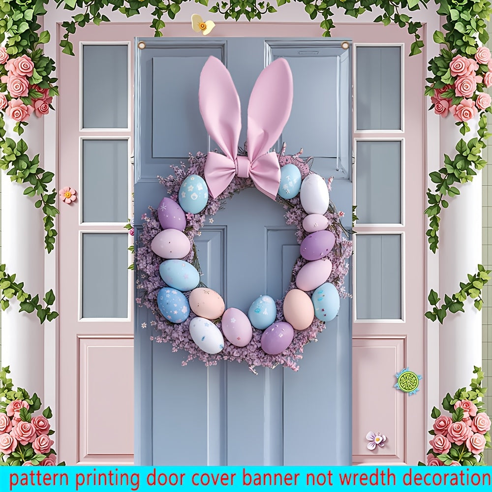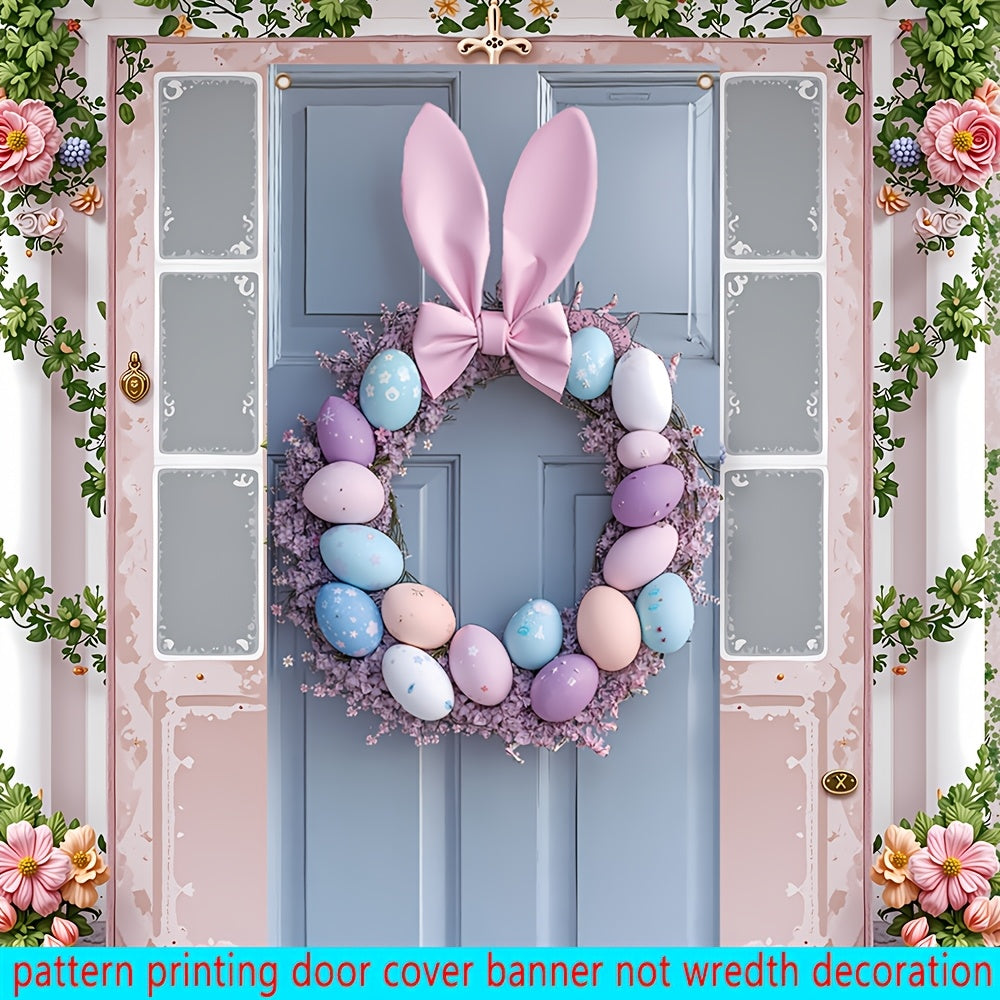 NNETM Bunny Ears Easter Egg Wreath Polyester Door Decor