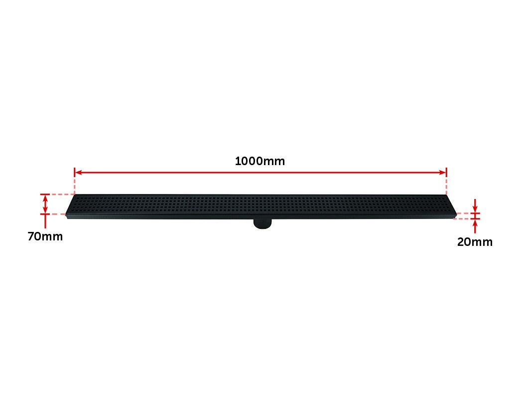 - 1 x 1000mm Bathroom Shower Black Grate Drain w/Centre outlet Floor Waste Square Pattern