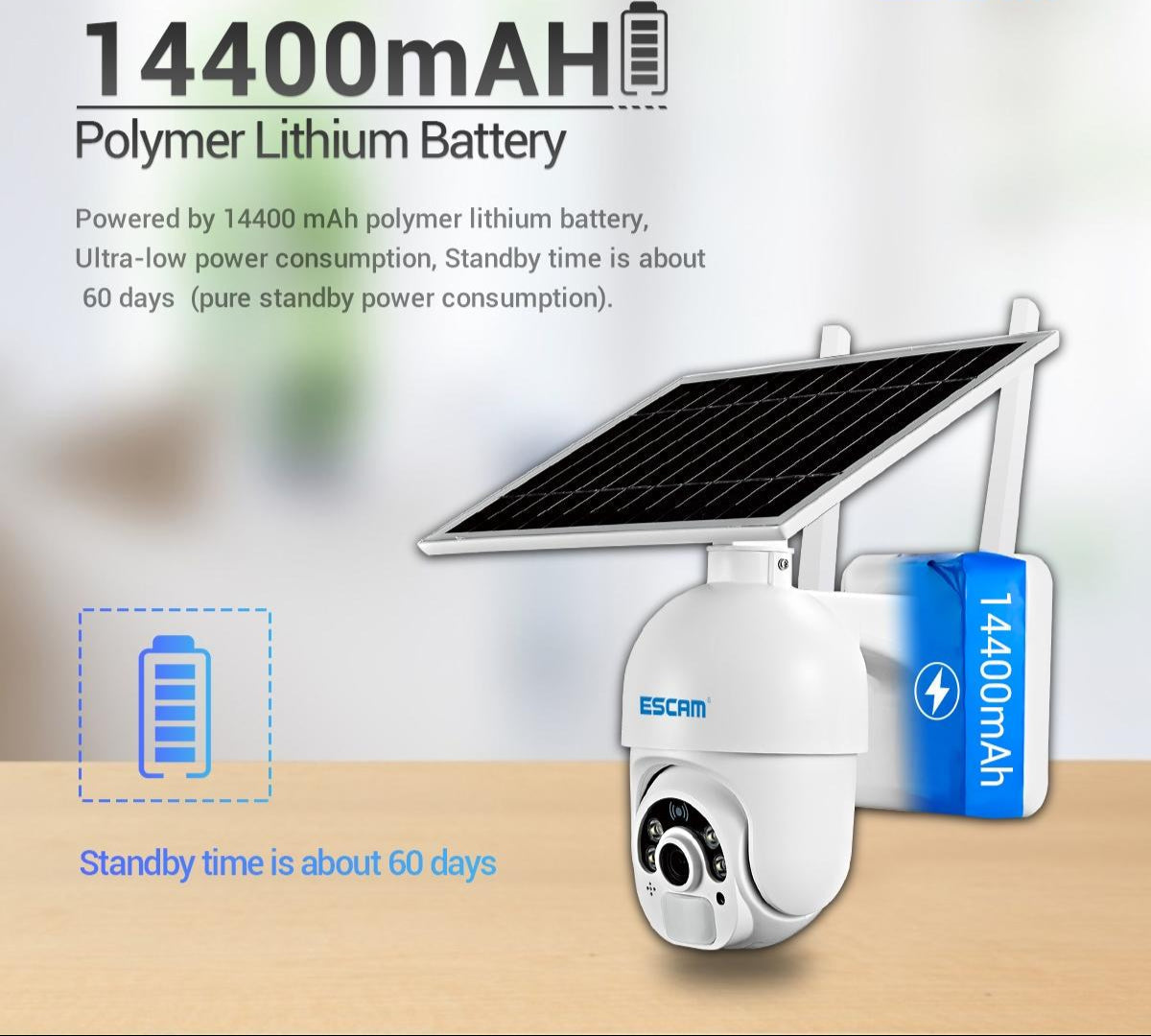 � Built-in 14400mAh rechargeable lithium battery with continuous charging from removable solar panel