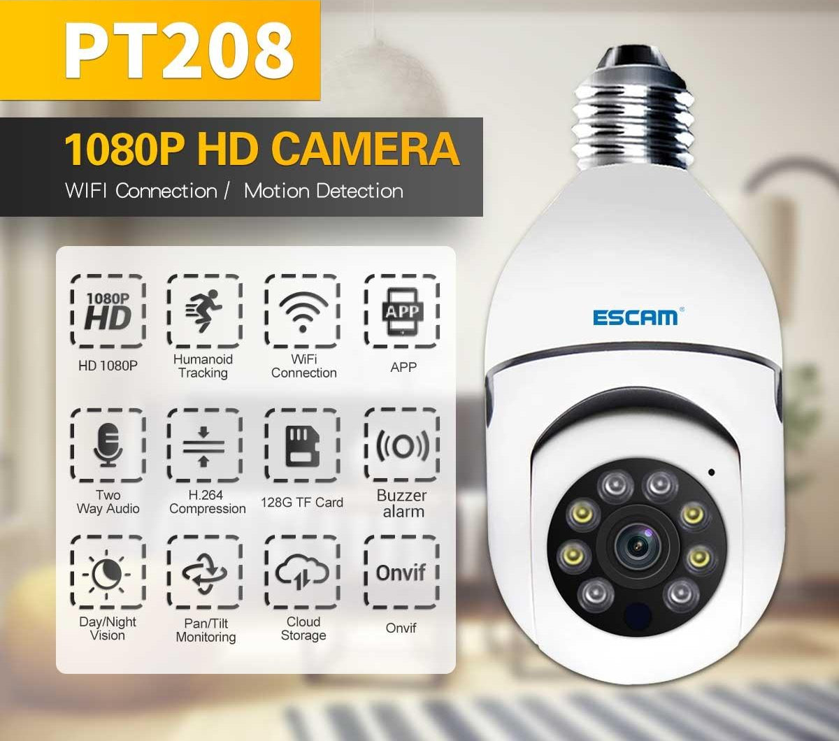 NNEIDS 1080P Wifi Light Bulb Camera With Motion Detection Night Vision And Two-Way Audio