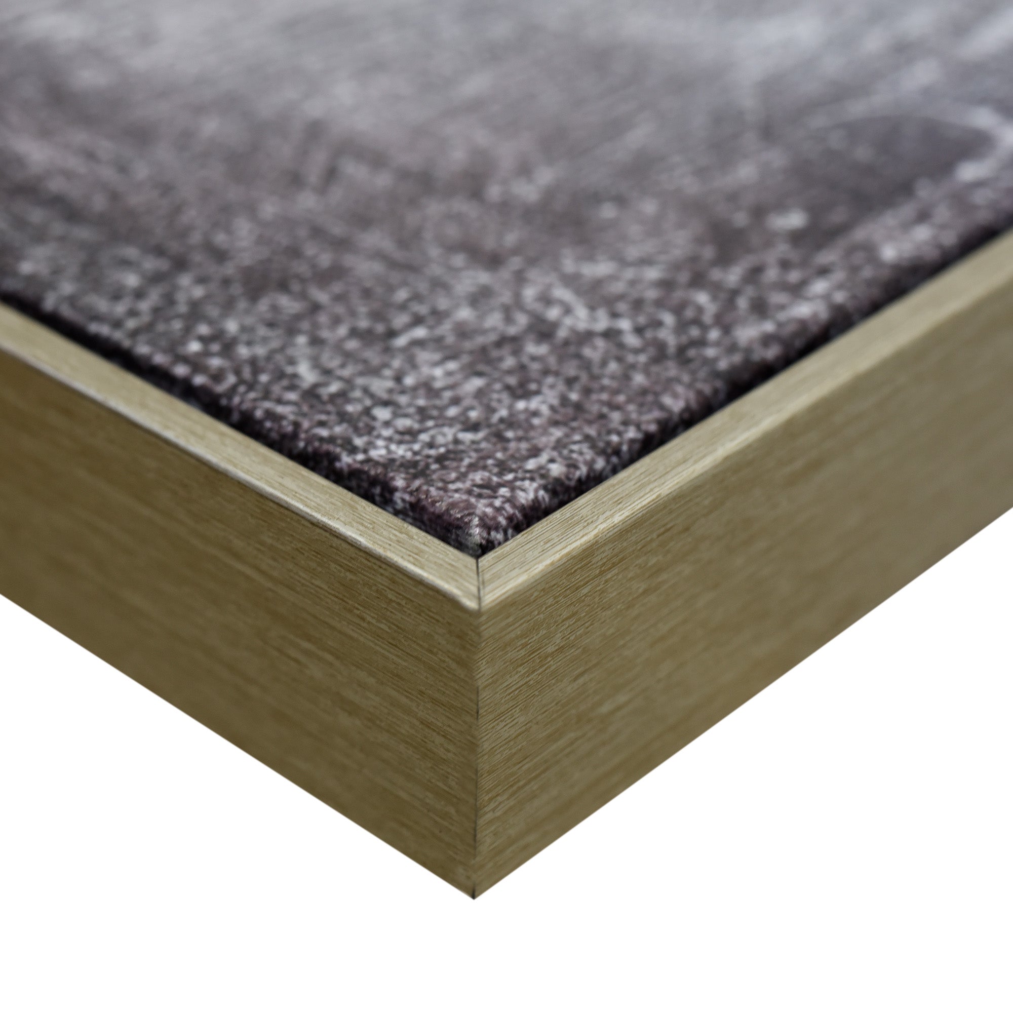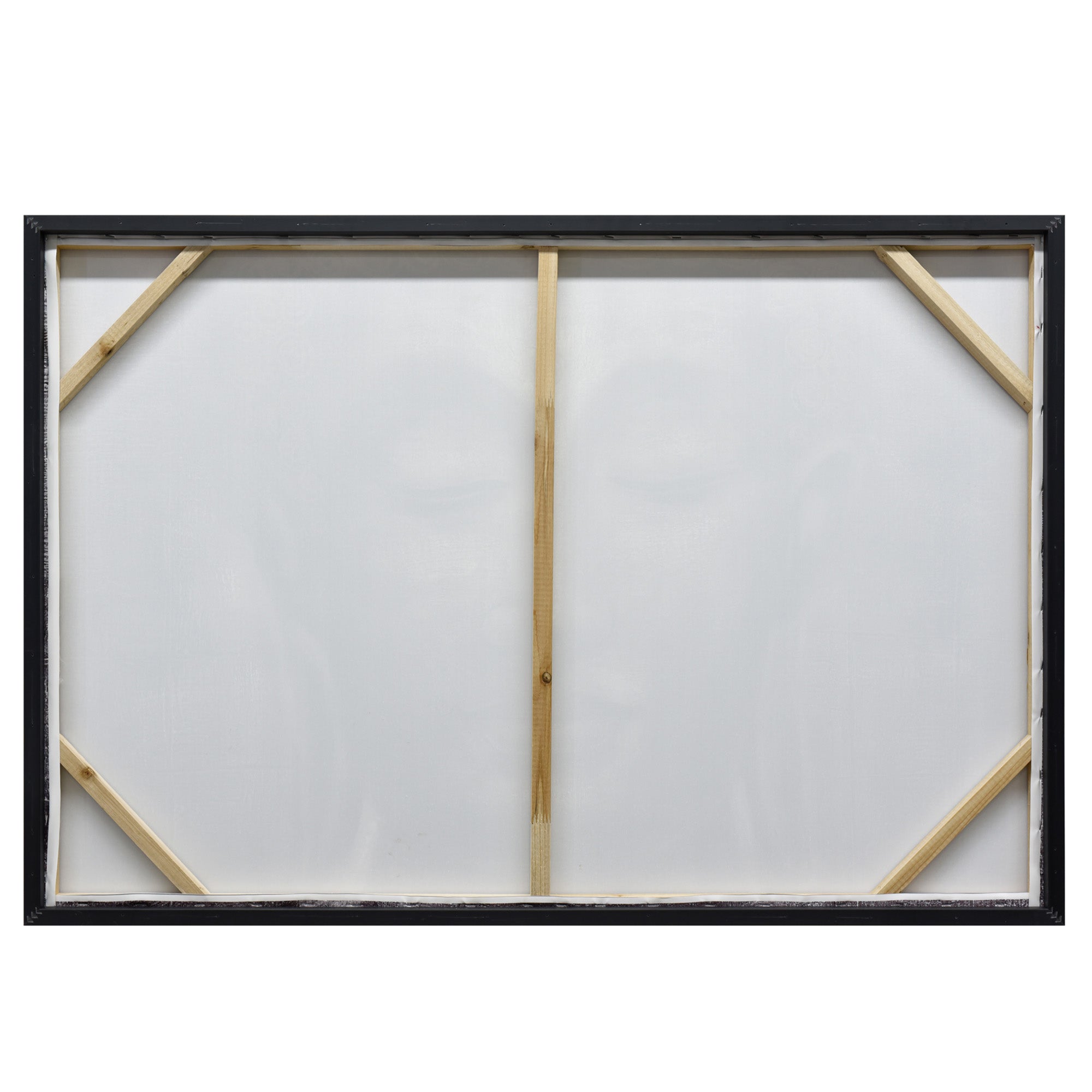 Stretched and gallery wrapped around a wooden stretcher and finished with a floating frame. There is a gap between the frame and print, which creates the floating effect and literally makes the canvas print stand out even more.