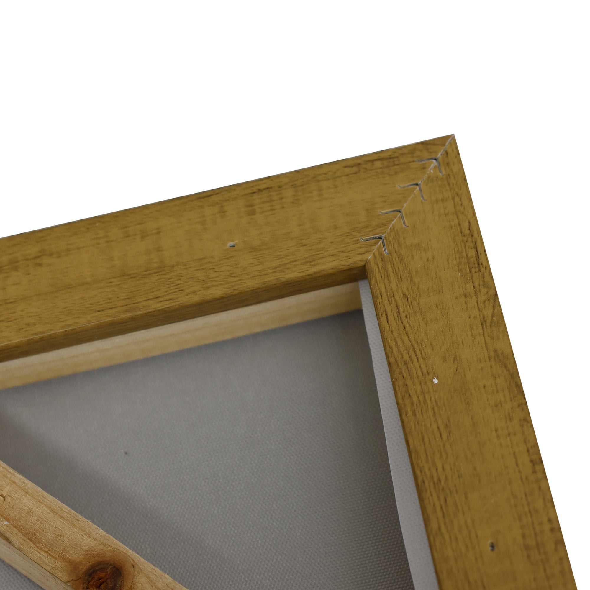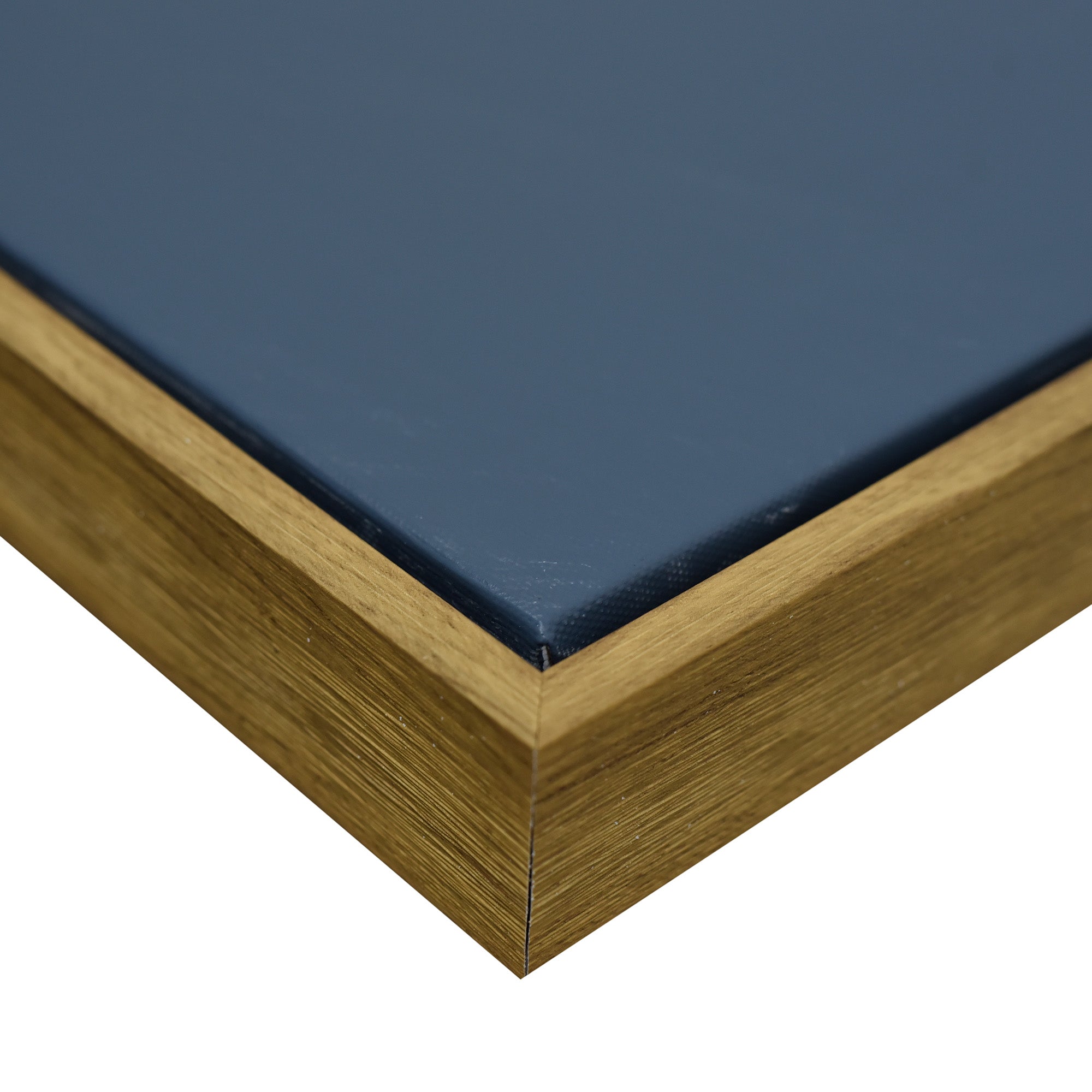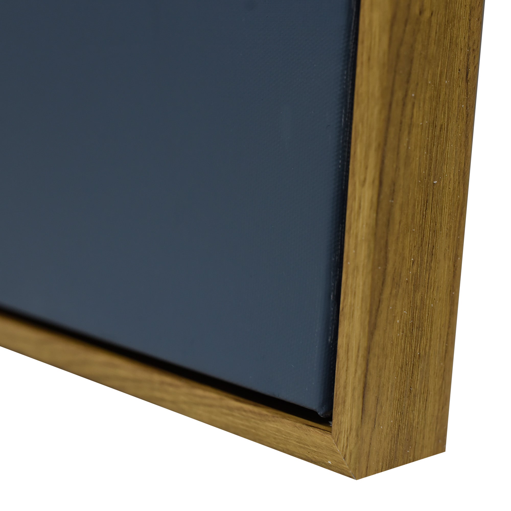 Stretched and gallery wrapped around a wooden stretcher and finished with a floating frame. There is a gap between the frame and print, which creates the floating effect and literally makes the canvas print stand out even more.