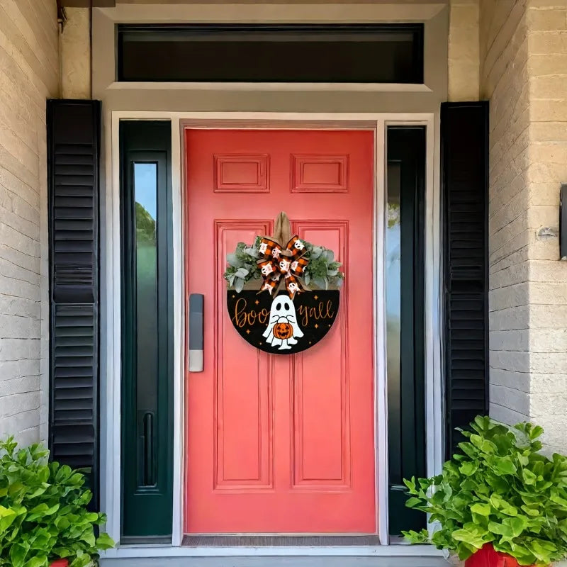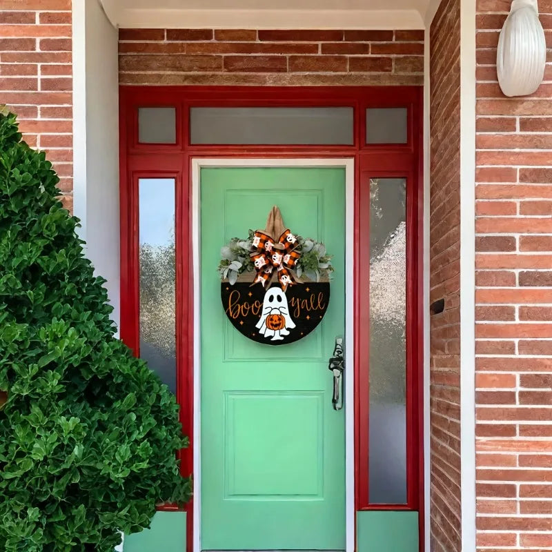 Description: Welcome Halloween with style using the NNEOBA Halloween Ghost & Pumpkin Wreath. This charming wooden wreath, crafted from bamboo, features playful ghost and pumpkin motifs that add a festive touch to any front door. With its durable design and lightweight build, it's easy to hang and perfect for spreading Halloween cheer. Whether you're decorating your home or looking for a unique housewarming gift, this wreath is sure to impress.