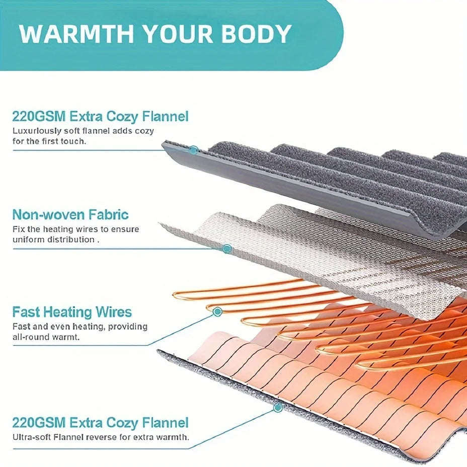 - 4-Hour Auto-Off: Built-in safety feature that automatically turns off the blanket after 4 hours, providing peace of mind and energy efficiency.