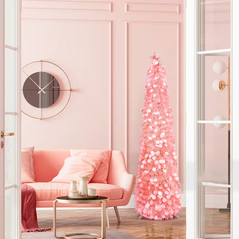 Add a festive touch with the NNETM Pink Pop-Up Christmas Tree, featuring tinsel, sequins, and snowy white-like branches for elegant holiday décor.