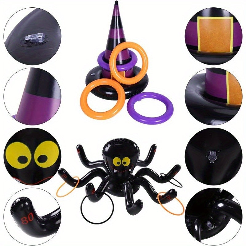 Enjoy endless fun this Halloween with the NNETM Halloween Ring Toss Game Set. Featuring 12 bright rings and 3 inflatable targets shaped like a spider, witch’s hat, and pumpkin, this set brings friendly competition to any party. It’s suitable for both kids and adults, making it perfect for family gatherings or school events.