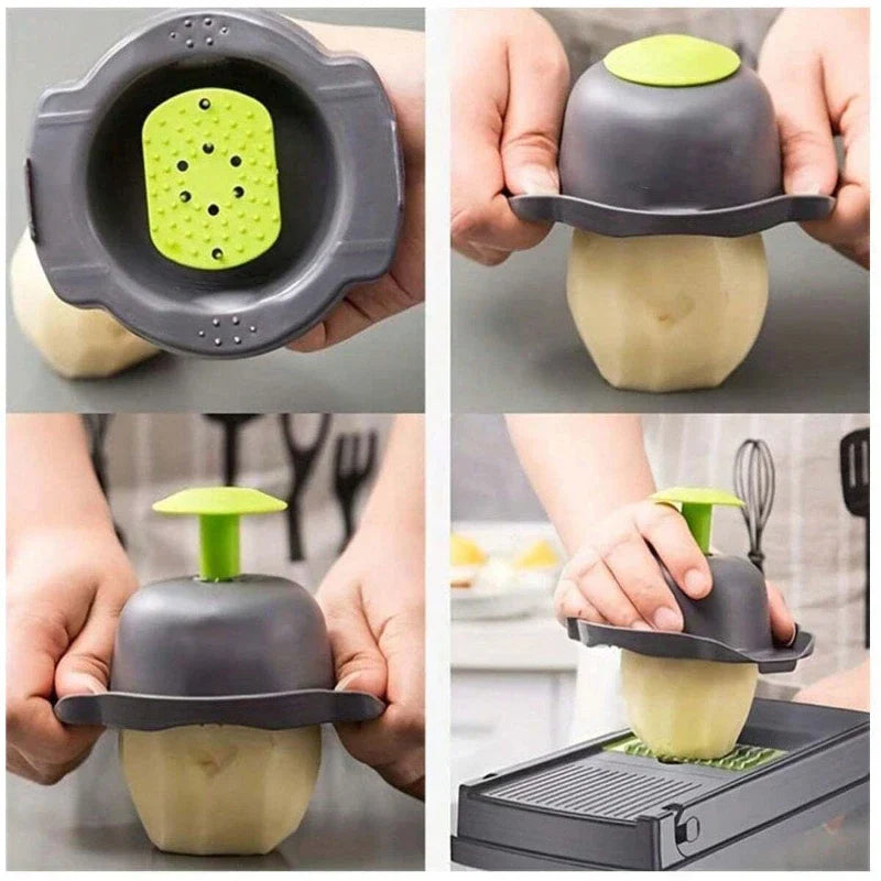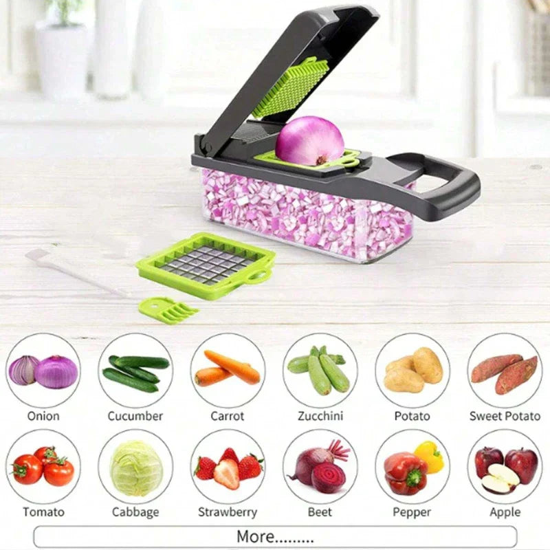 - The Vegetable Chopper Set includes 16 pieces, each serving a different function for chopping, slicing, grating, and more. From fine dicing to julienning, this set provides all the tools you need to prepare a wide variety of fruits and vegetables.