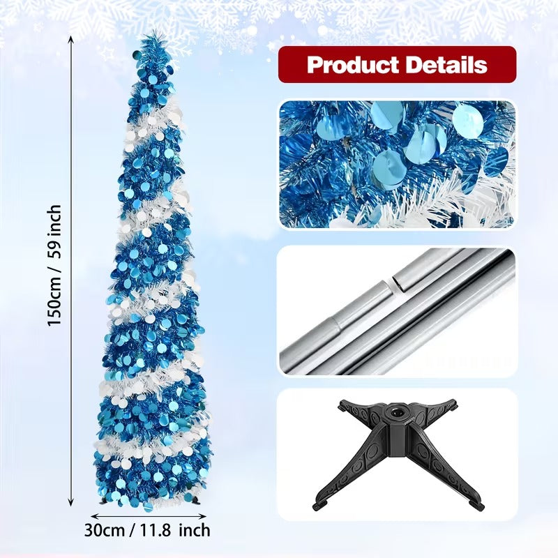 The NNETM Pre-Lit Blue Fir Christmas Tree brings festive cheer to any space. Refer to the image for dimensions to ensure the perfect fit in your home. Designed for easy assembly and stable placement, this tree is perfect for celebrations like Christmas, New Year, weddings, and parties. Its durable metal and plastic construction ensures it will be a part of your holiday traditions for years to come.
