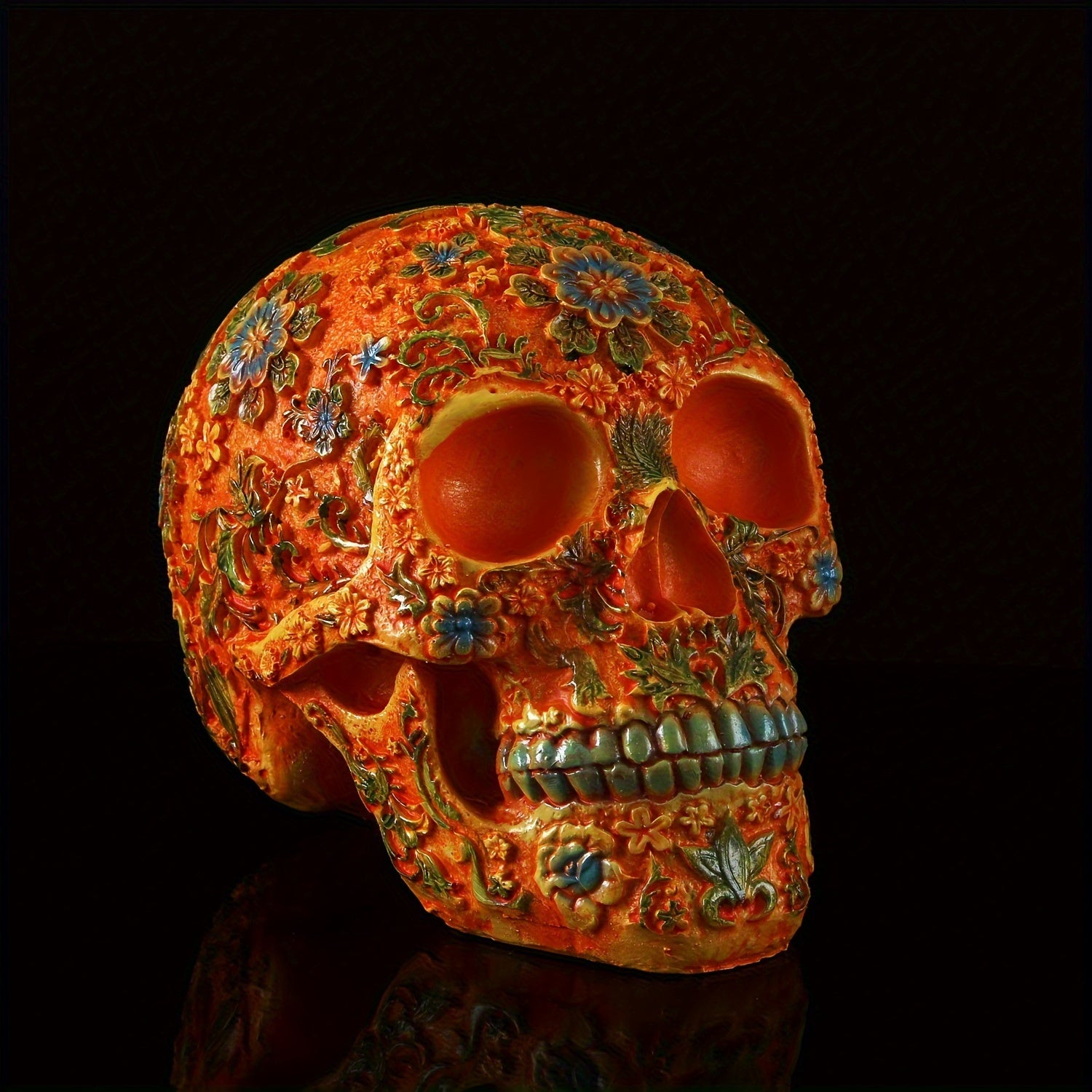 Description: Elevate your Halloween decor with the Vintage Resin Bone Skull Head, a striking piece that blends traditional elegance with a touch of gothic flair. This eye-catching ornament features an intricate plum blossom pattern, adding a unique and artistic twist to the classic skull design. Perfect for enhancing the ambiance of your bar, home, or Halloween party, it brings a sophisticated yet eerie atmosphere to any setting.