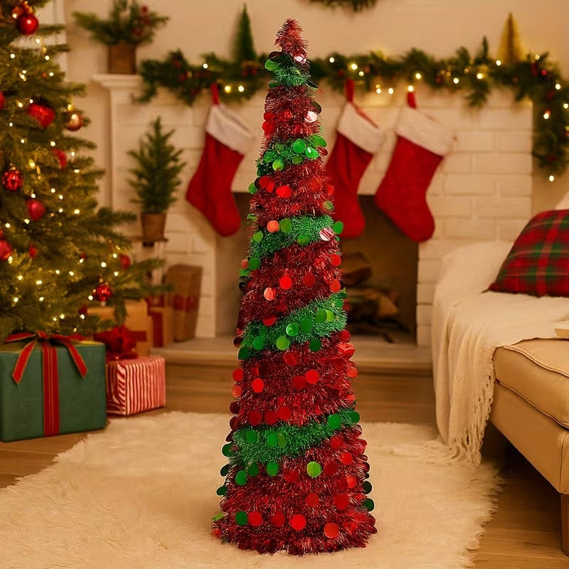 NNETM Red Green Sequin Tinsel Christmas Tree