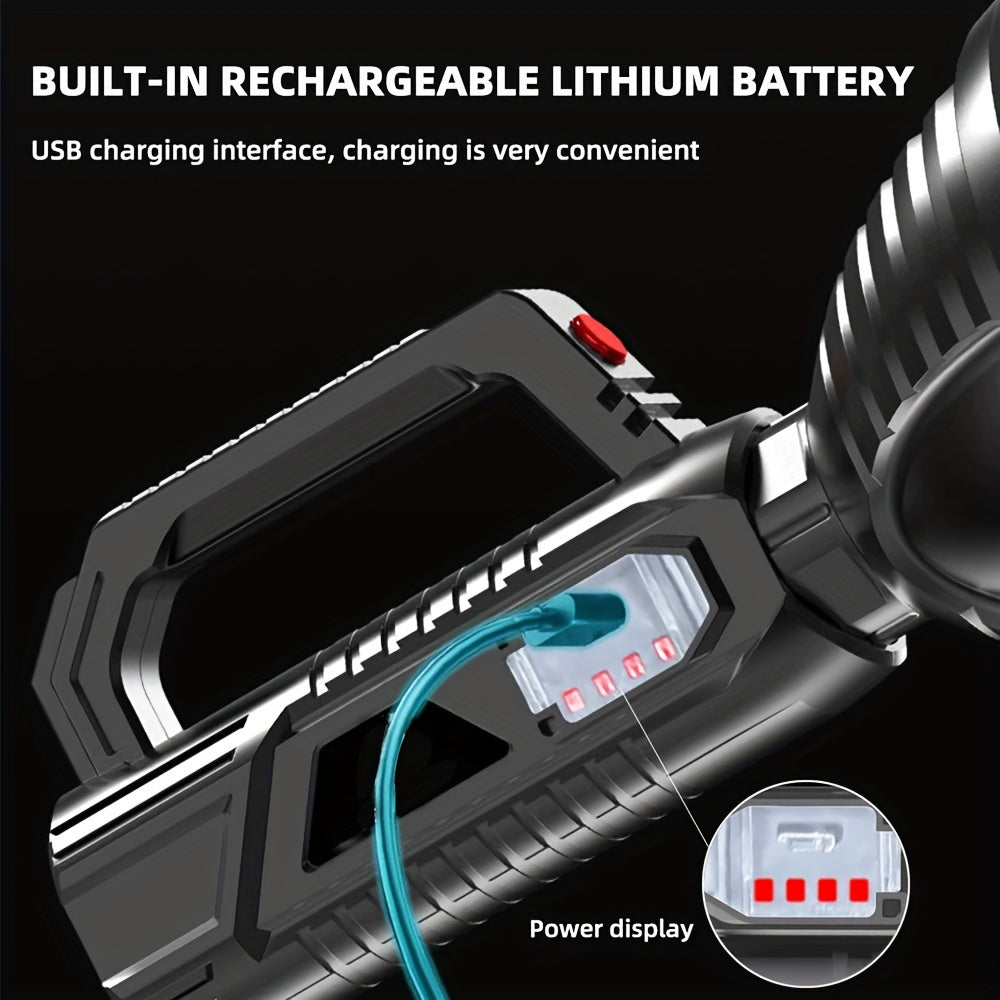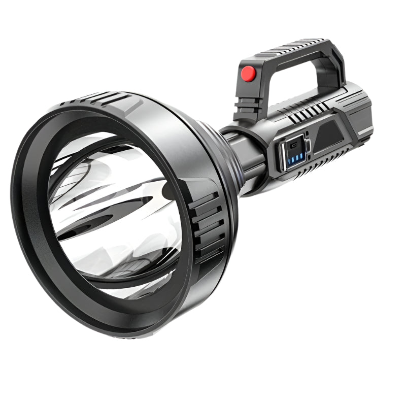 Compact, rechargeable tactical flashlight with dual power modes for outdoor and emergency use.