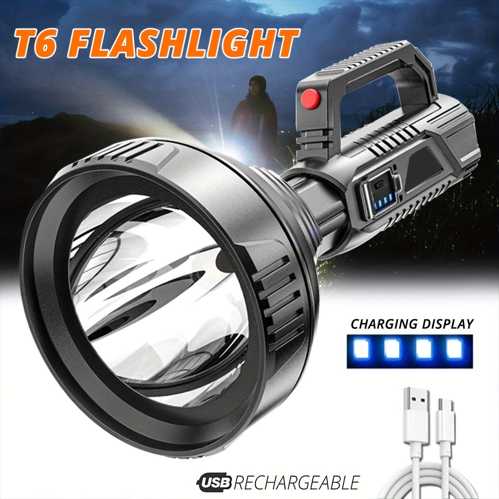 Product Description: The NNETM Rechargeable T6 LED Tactical Flashlight is designed for versatility and reliability. Offering 350-500 lumens of bright illumination, it’s perfect for outdoor activities such as camping, emergency maintenance, and more. With a durable ABS construction and a matte finish, this compact flashlight ensures a secure grip. Powered by a rechargeable 18650 lithium battery or USB, it delivers up to 50 meters of clear visibility. Not waterproof, but perfect for non-water environments. Refer to the image for detailed dimensions.