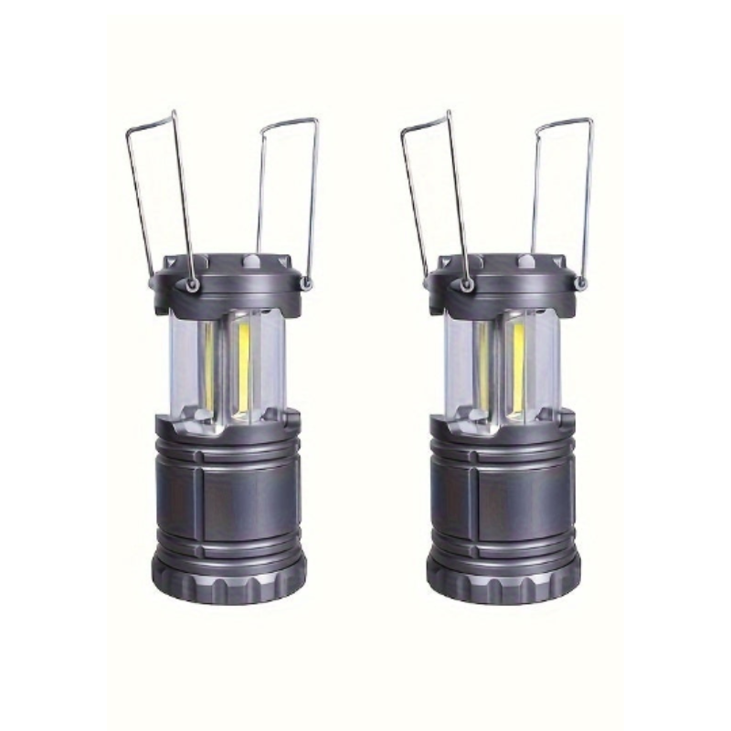 The NNETM 2-Pack Ultra-Bright LED Camping Lanterns offer powerful illumination for outdoor adventures and emergencies. With a compact, foldable design, these lanterns are easy to carry, making them perfect for camping, hiking, and power outages. The durable ABS body with a polished metal finish ensures long-lasting durability, while the LED lights provide bright and energy-efficient lighting. Battery-powered for convenience, these lanterns require no wiring, allowing for easy setup anywhere. Whether you're preparing for an outdoor trip or need a reliable light source for emergencies, this set of two ensures you have dependable lighting whenever needed. Refer to the image for dimensions.