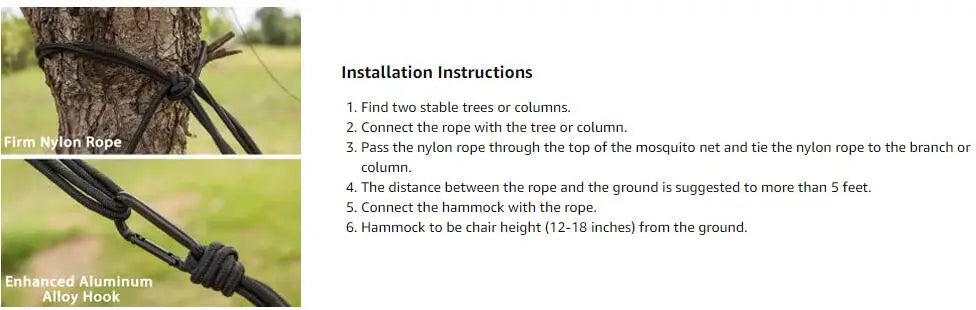 - Versatile Outdoor Furniture: Whether you're seeking a comfortable camping bed or a peaceful garden retreat, this hammock offers a versatile and enjoyable solution for your outdoor leisure.