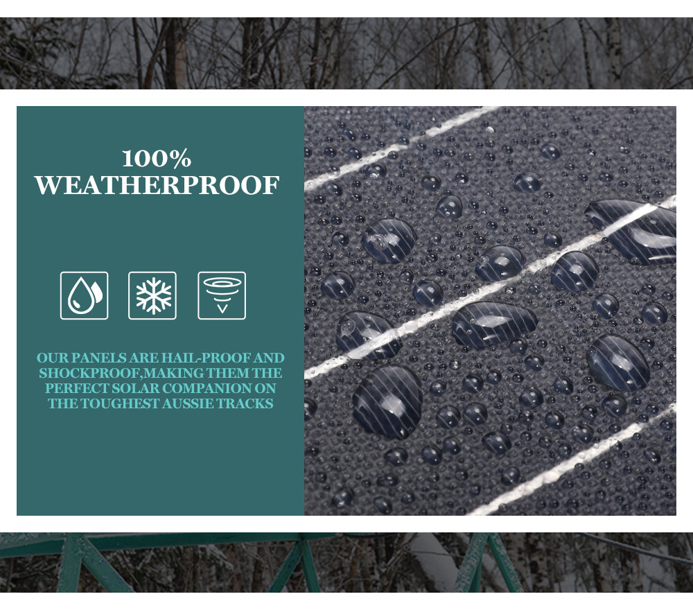 Ultimate Durability: This panel is impact-resistant,shatter-resistant and water-resistant, making it the most durable solar panel on the market.