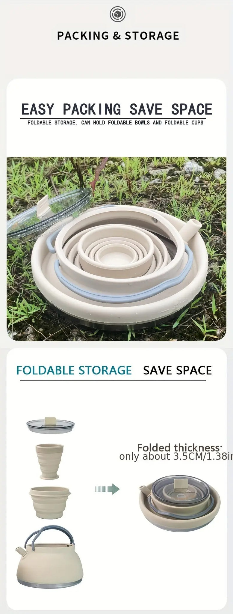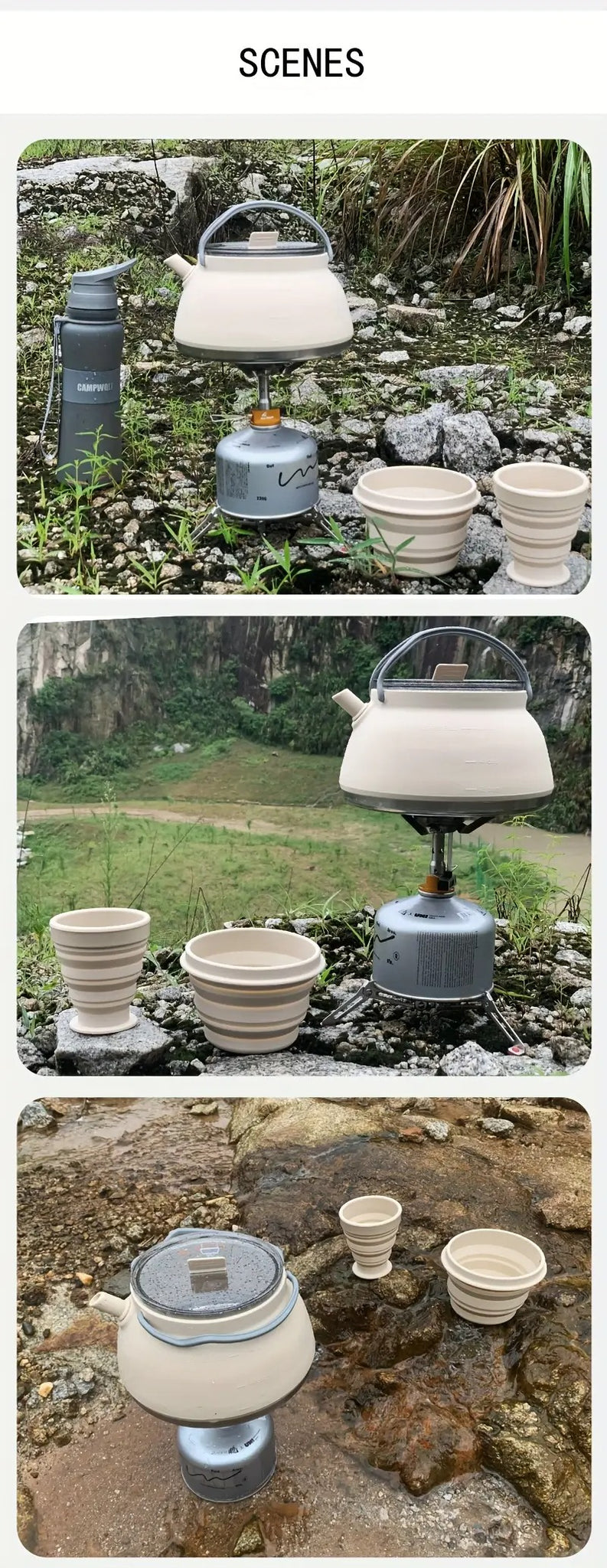 Compact and foldable kettle designed for camping, hiking, and travel.