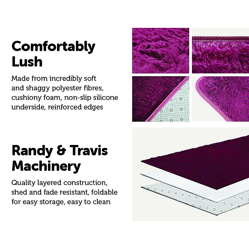 Love the look of the Sixties' and Seventies' iconic shag rugs? Here's the perfect home accessory. With this gorgeous burgundy shag rug by Randy & Travis Machinery, you can have the look you crave with the advantage of today's manufacturing technology. Crafted from fade- and stain-resistant polyester, this rug features two more layers underneath the shag to give it even more comfort and durability. A five-millimetre foam layer directly underneath adds incredible comfort, as well as insulation and sound absorption.