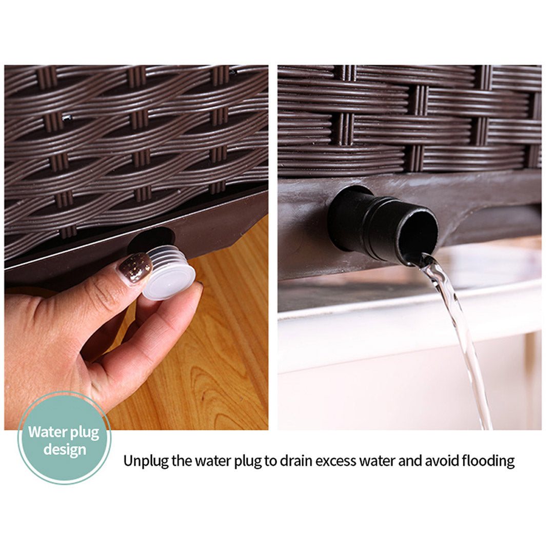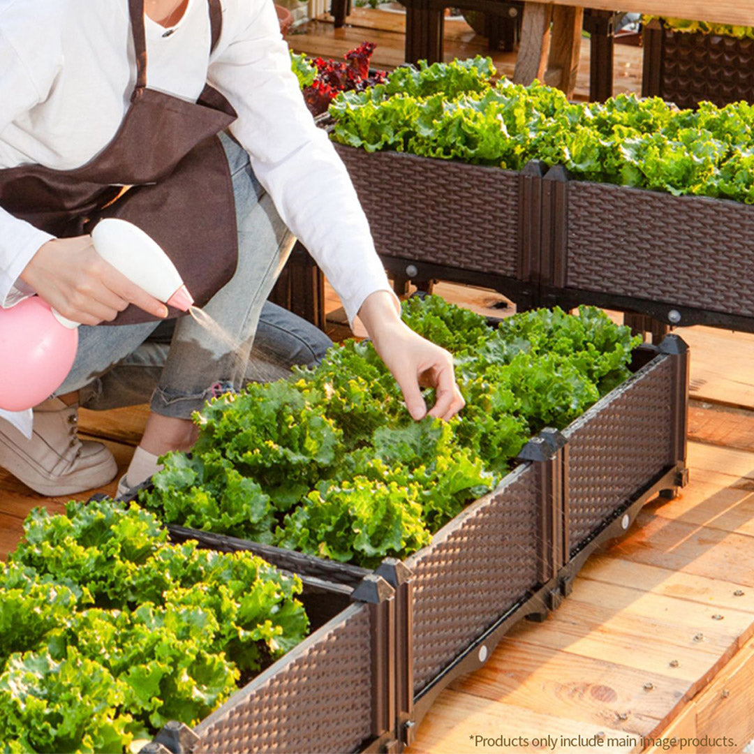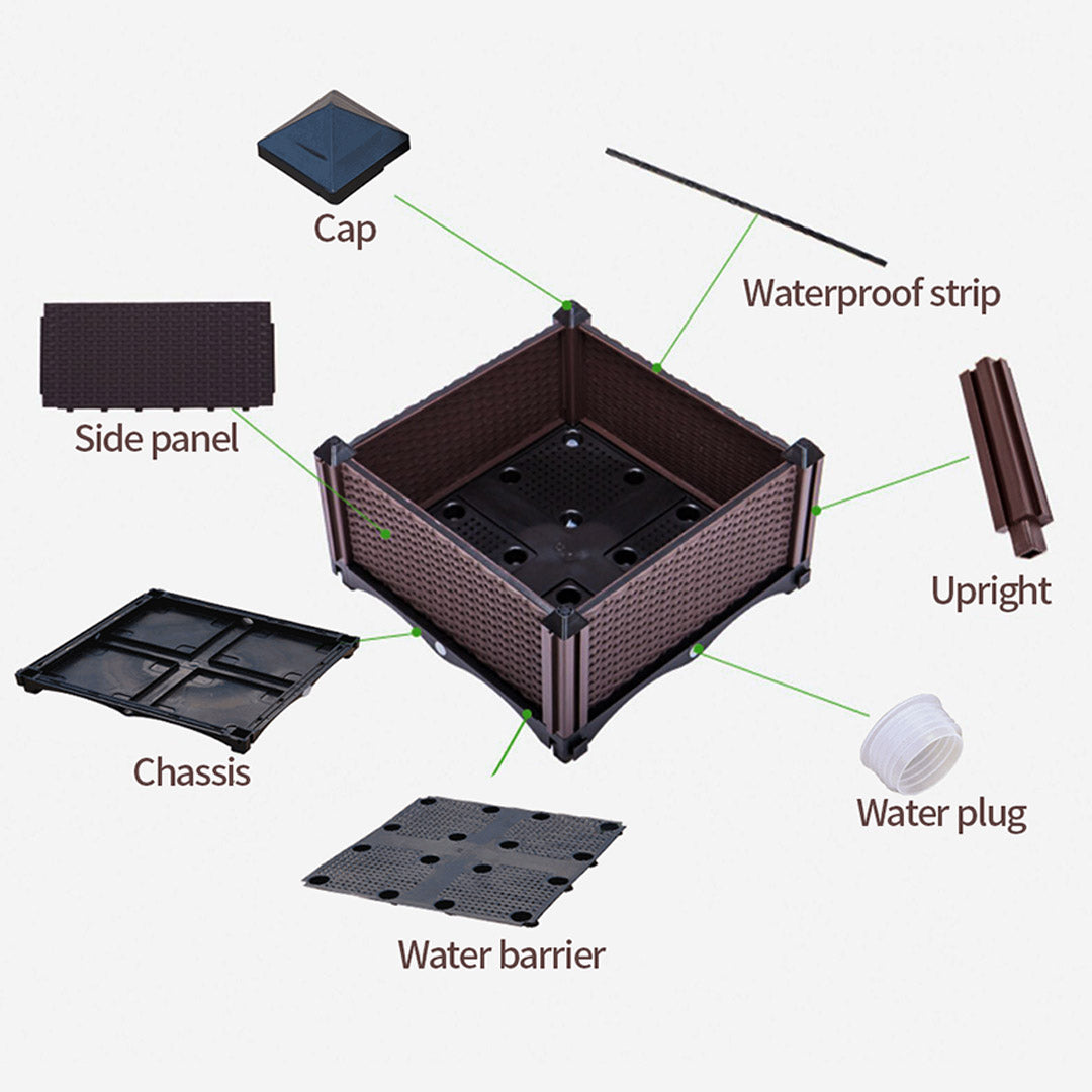 SOGA Raised Garden Bed has a SELF-WATERING PATTERN. Designed in a way that you conserve water - stop the water leaking, seeping, or evaporating so you, in turn, less usage. It has a water barrier & bottom board design, filtering excess from the soil and storing it in the bottom boards -helping plants absorb water and nutrition completely. Drains holes with small buttons providing good breathability for plant growth and drains excess water when needeed