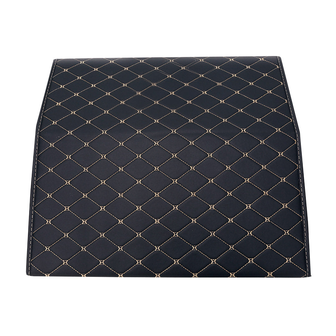 NNEAGS 2X Leather Car Boot Collapsible Foldable Trunk Cargo Organizer Portable Storage Box Black/Gold Stitch Small