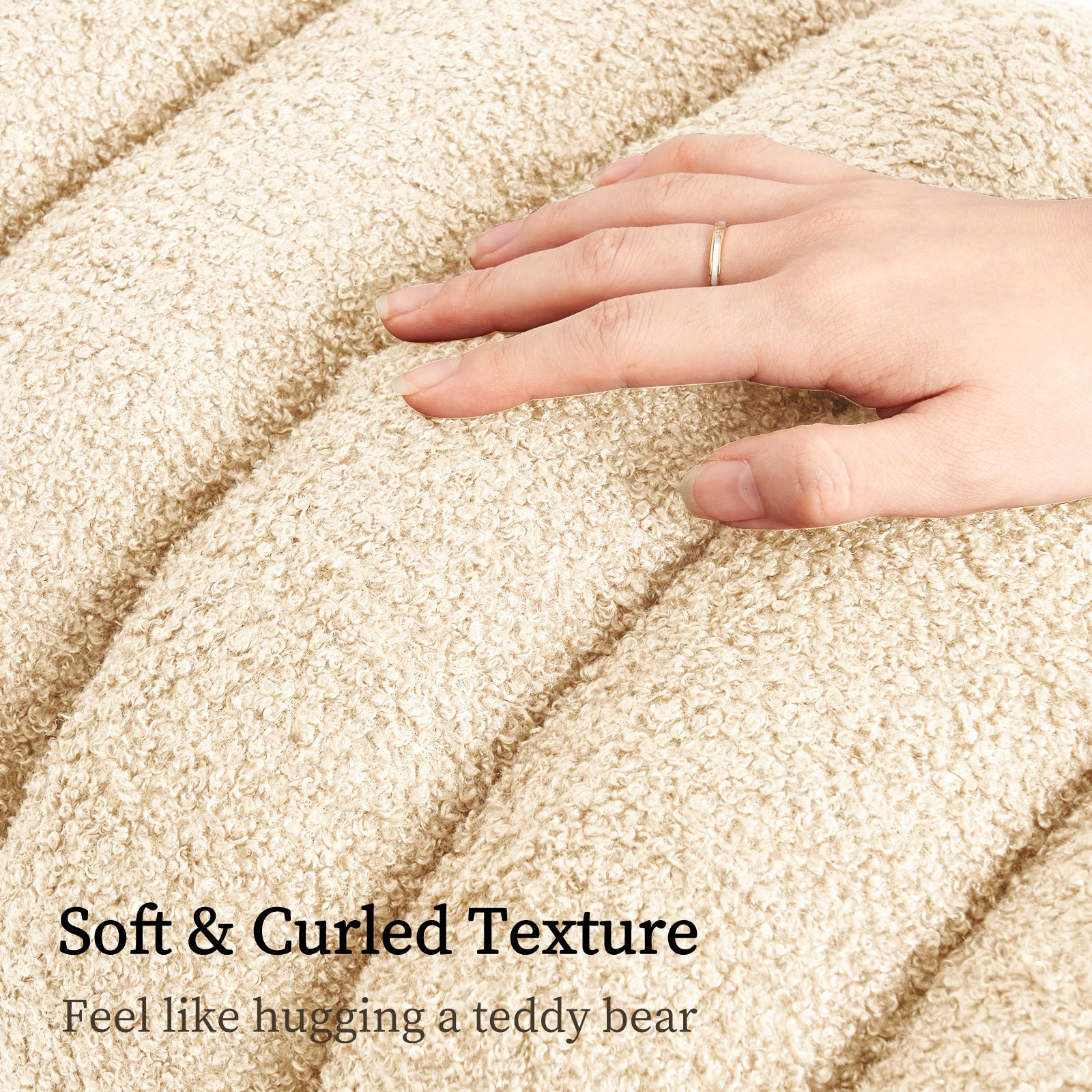 Featuring a wave-like arch design with clean lines and a refined silhouette, this piece adds a modern, unique touch to any room. The curled, teddy-like texture of the Teddy Boucle upholstery feels as comforting as a warm hug.