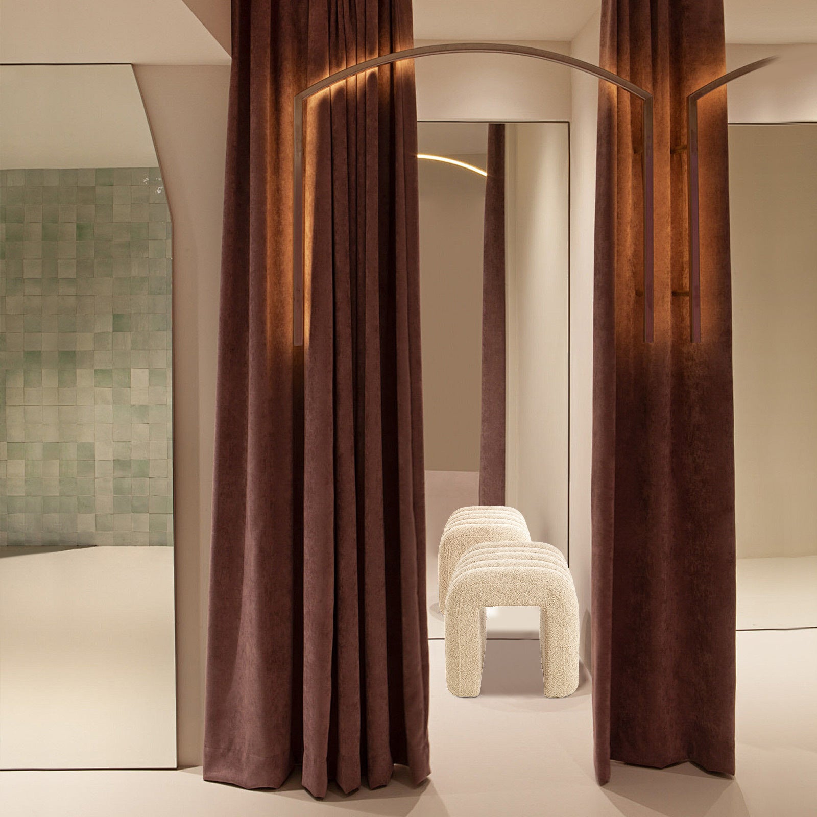 Bring cozy charm and contemporary elegance to your space with this arch-layered stool, crafted for both style and comfort in a warm, teddy-textured fabric for an inviting feel.