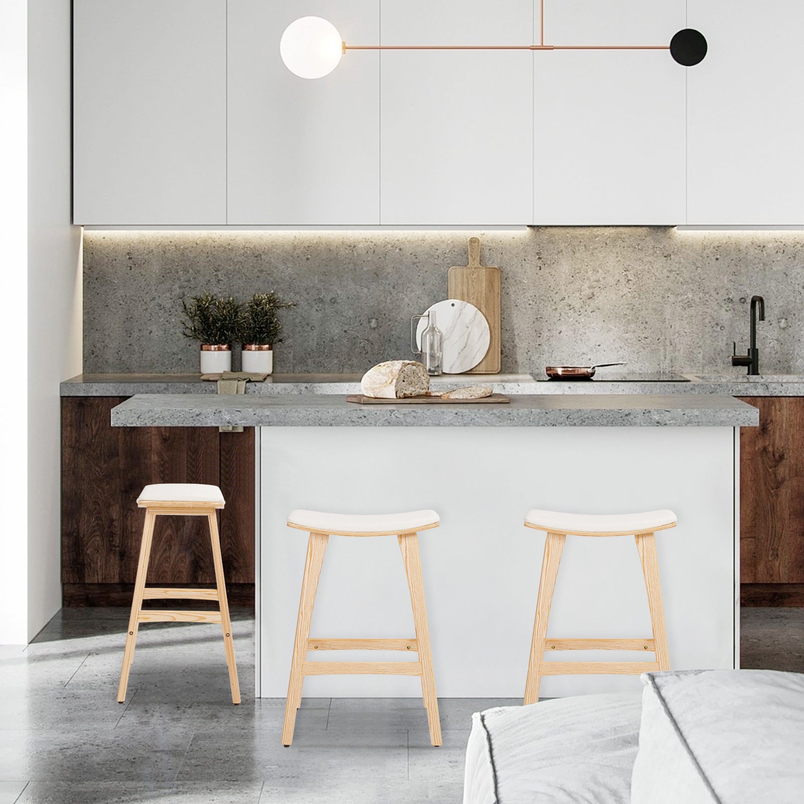 NNEDSZ 2X Wooden Bar Stool Padded Fabric Dining Chair KANSO 65cm BEIGE