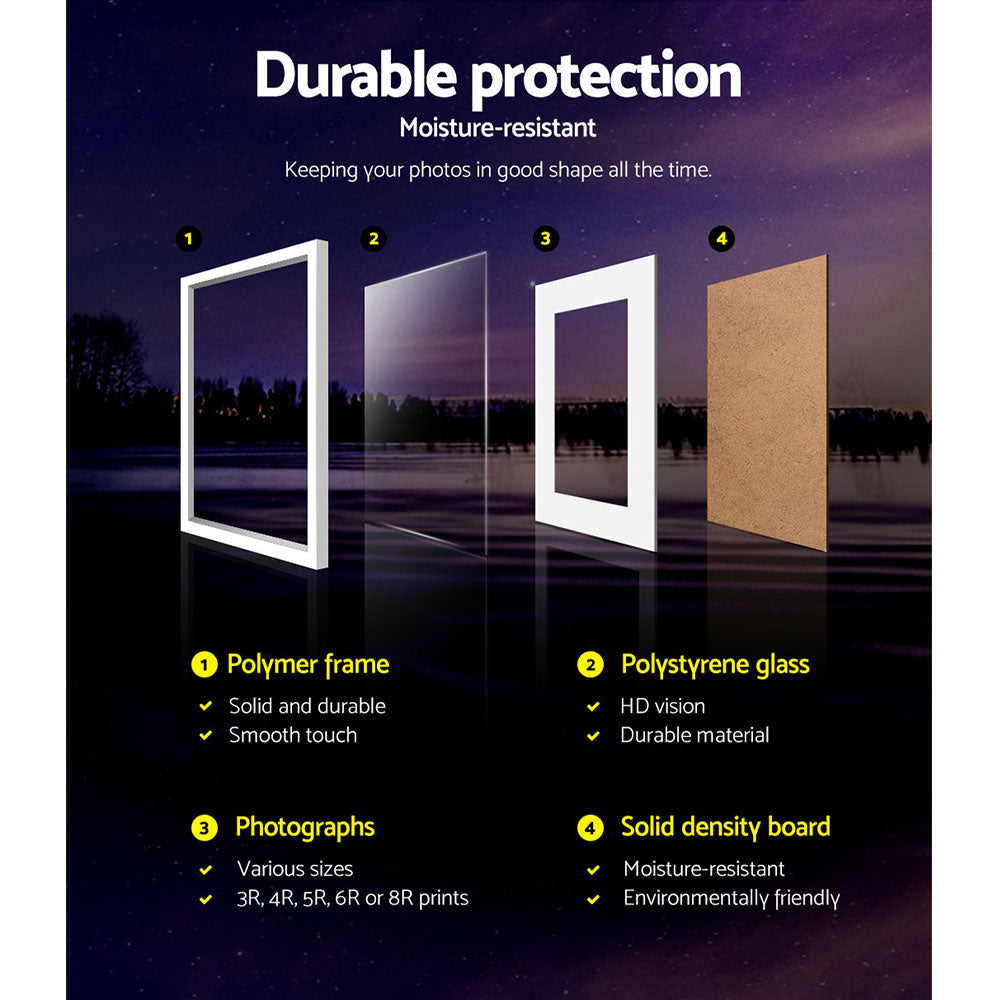 Every picture tells a story. And we are sure your extensive photo collection has lots to tell. So why not frame up the interesting ones on the wall and share the stories behind them to friends and family. You can do that beautifully with our charming Photo Frame Set. Available in a set of 3, our set allows your walls to be graced with fascinating stories and memorable moments from your treasured photographs. Arrange them in any way you like. Portrait or landscape, the framed photo feature wall is a conversational piece in its own right. Suitable for A3 photograph size, the frames feature a durable polymer construction with a high transparency acrylic glass to keep your prints in good shape. The hardboard backing is also moisture-resistant. Hanging accessories are also included with your purchase.