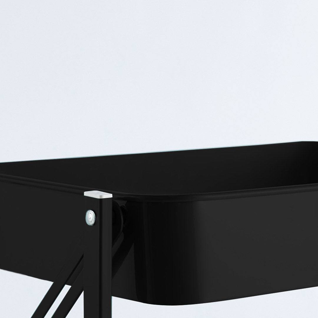 NNEAGS 3 Tier Steel Black Foldable Kitchen Cart Multi-Functional Shelves Portable Storage Organizer with Wheels