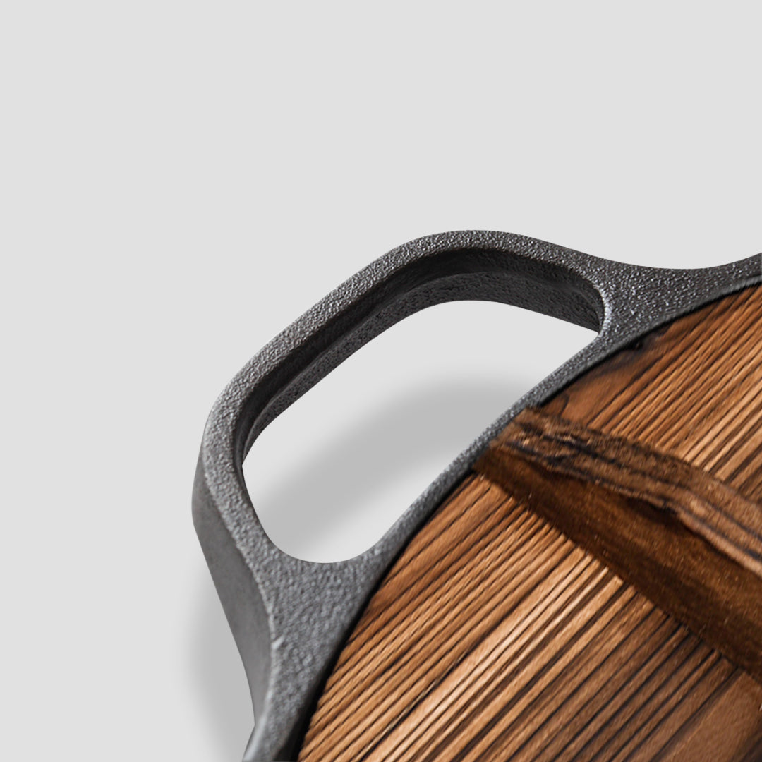 NNEAGS 33cm Round Cast Iron Pre-seasoned Deep Baking Pizza Frying Pan Skillet with Wooden Lid