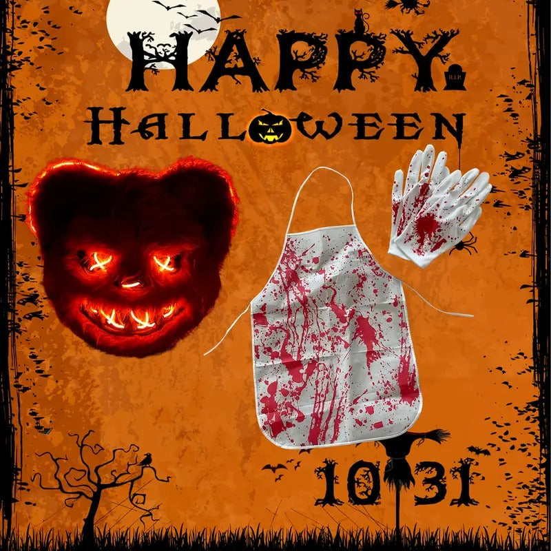 Includes three pieces: rabbit mask, bear mask, and glowing gloves with apron