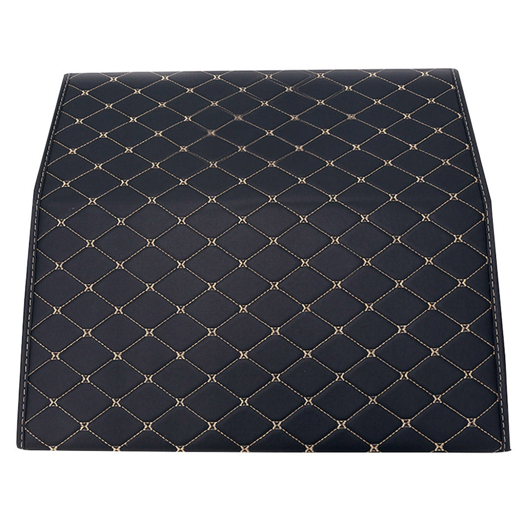 NNEAGS 4X Leather Car Boot Collapsible Foldable Trunk Cargo Organizer Portable Storage Box Black/Gold Stitch Large