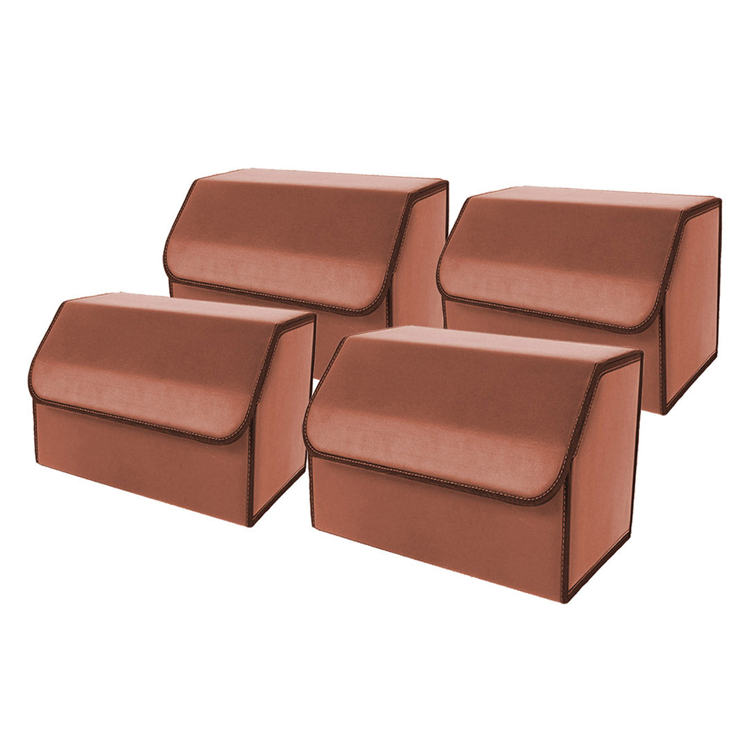 NNEAGS 4X Leather Car Boot Collapsible Foldable Trunk Cargo Organizer Portable Storage Box Coffee Medium