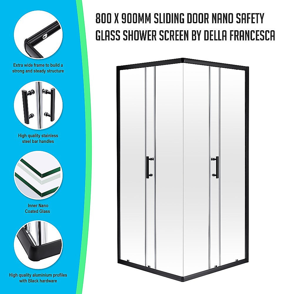 NNEDSZ 800 x 900mm Sliding Door Nano Safety Glass Shower Screen By Della Francesca
