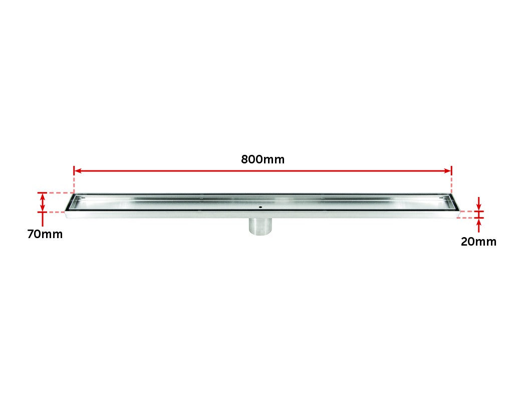 - 1 x 800mm Tile Insert Shower Bathroom Stainless Steel Grate Drain w/Centre outlet Floor Waste