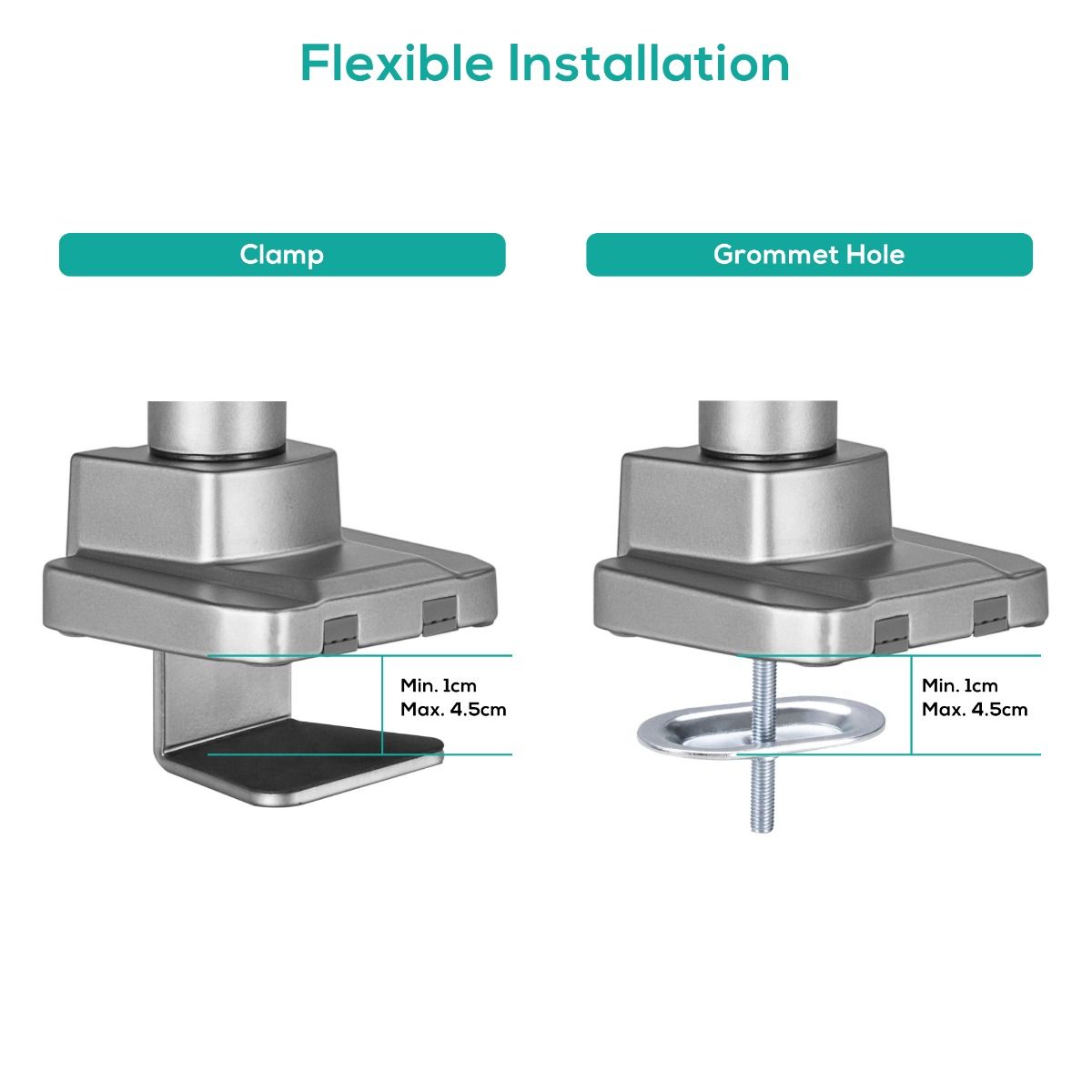 - Two Mounting Options for Customizable Setup: This activiva monitor arm can be mounted using either the included desk clamp or grommet, giving you the flexibility to choose the most suitable option for your setup.