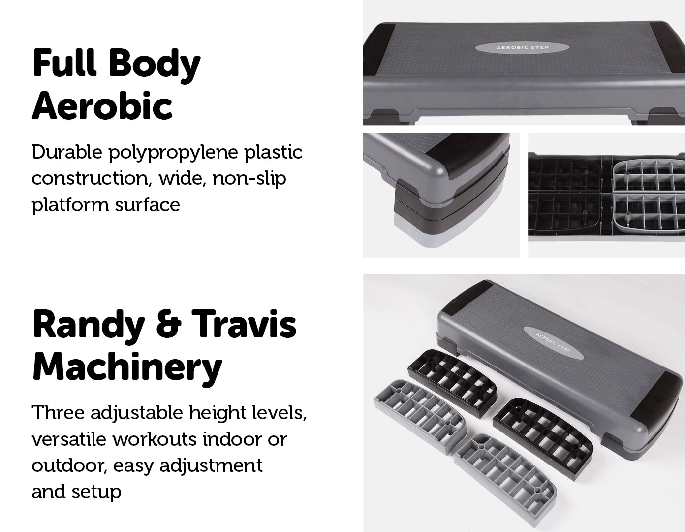 Here's a must-have for the gym or home gym: the versatile Adjustable Aerobic Step. Naturally this step is perfect for step aerobics, but weightlifters and endurance athletes will also find plenty of uses for this do-everything piece of fitness equipment.