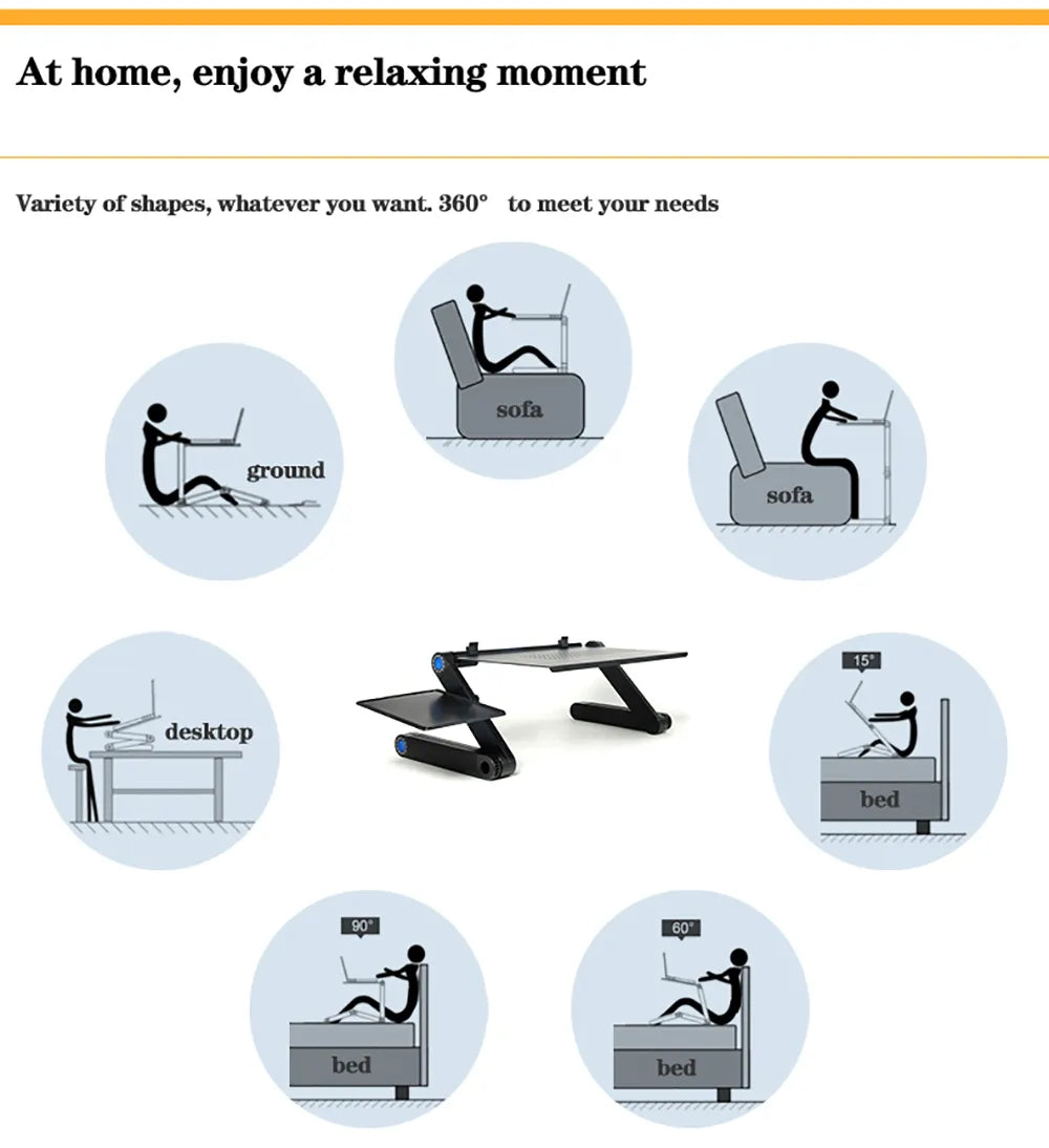 Upgrade your laptop experience with our Adjustable Aluminum Laptop Desk Stand. Whether you're working from the bed, sofa, or at your PC, this lapdesk provides comfort and functionality. Its lightweight and portable design make it a practical solution for creating an ergonomic workspace wherever you are.