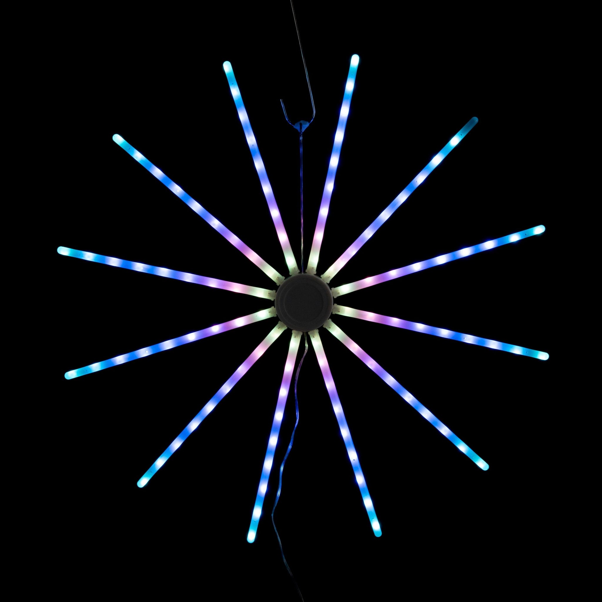 Add festive flair to your space with the App Controlled LED Lightshow Spinner. This 60cm starburst display features stunning RGB lighting effects and adjustable colors, perfect for creating a magical holiday atmosphere indoors or outdoors.