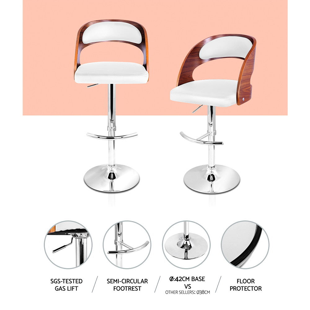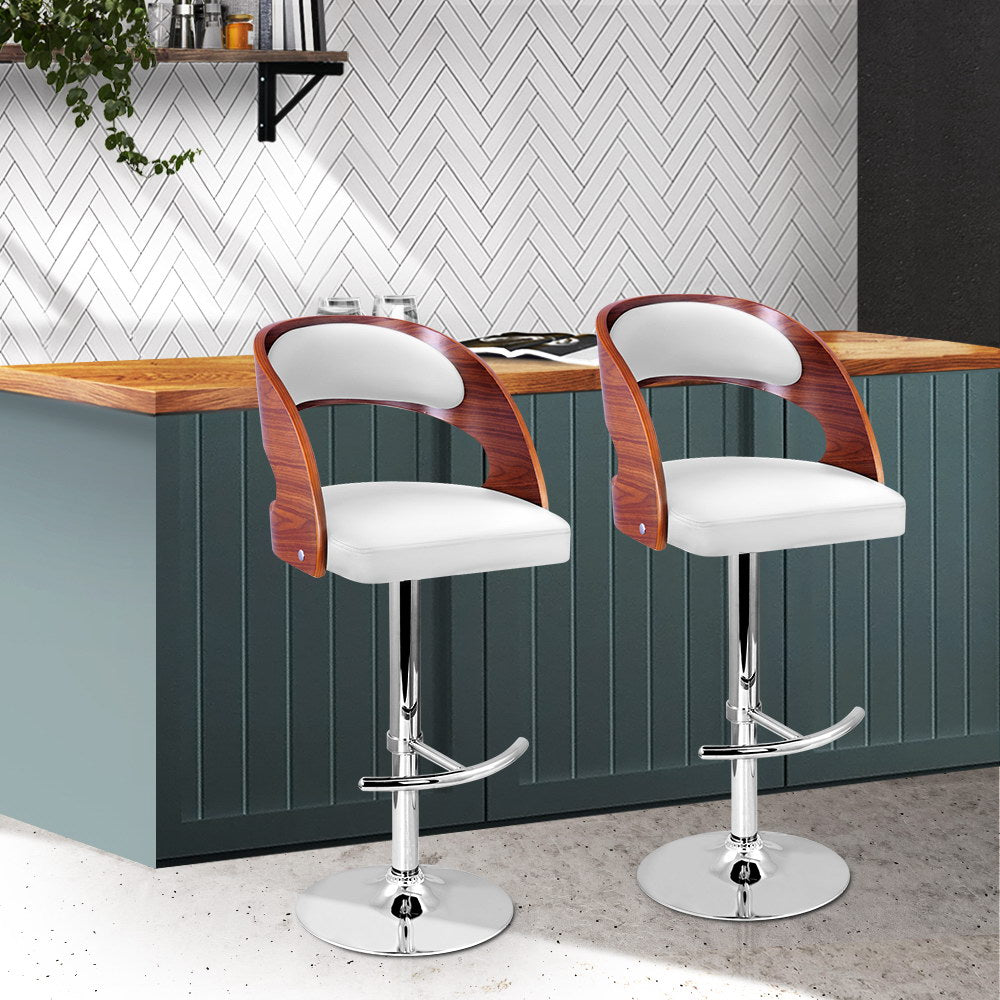 NNEDSZ 2x Wooden Bar Stools Bar Stool Kitchen Dining Chairs Gas Lift Bella White