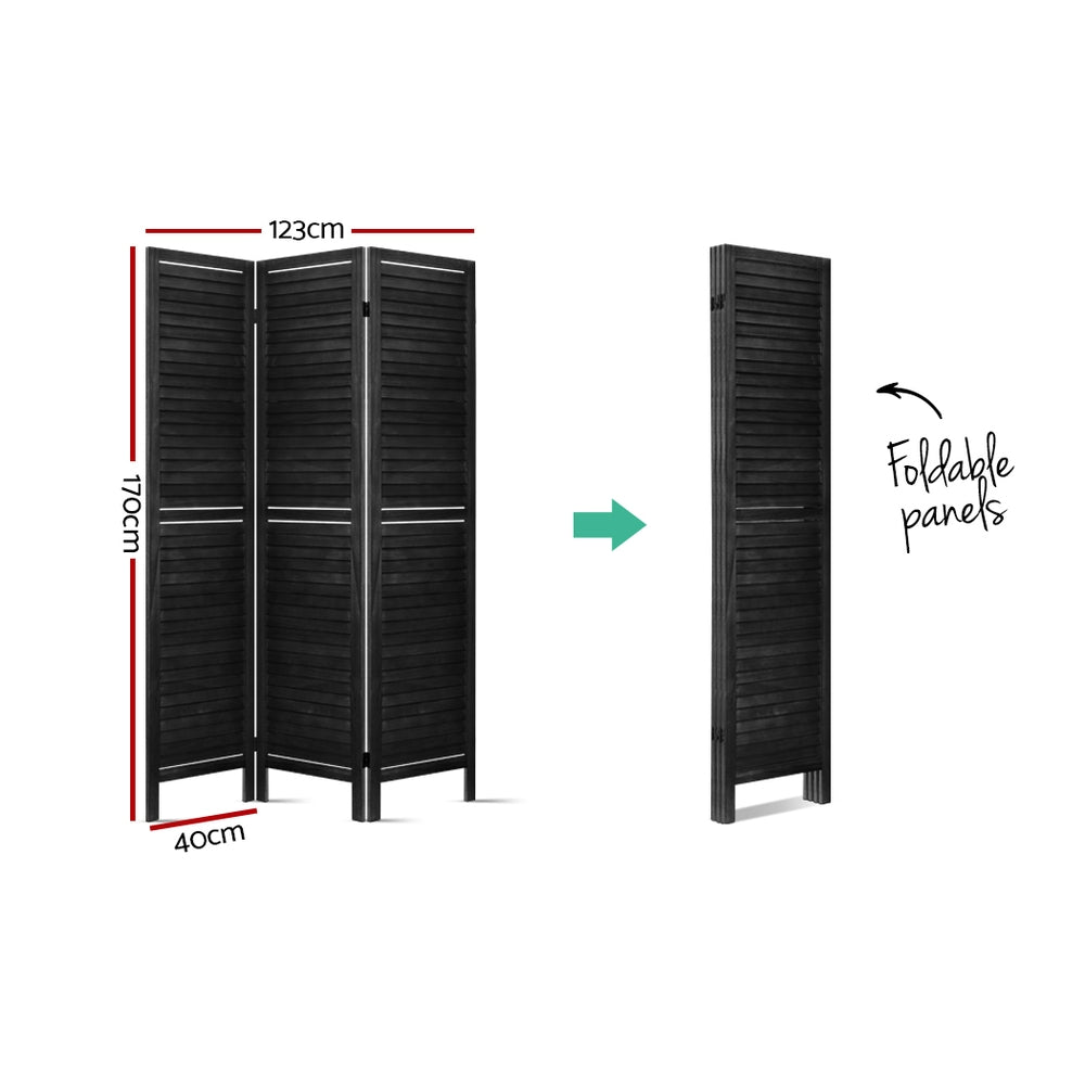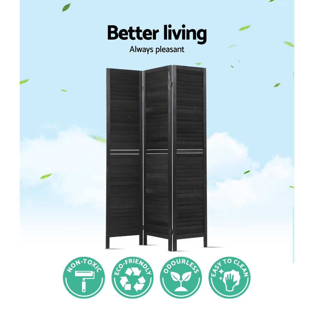 NNEDSZ 3 Panel Room Divider Screen Privacy Wood Dividers Timber Stand Black