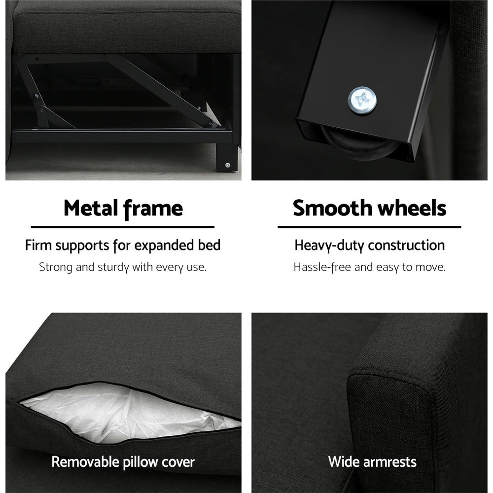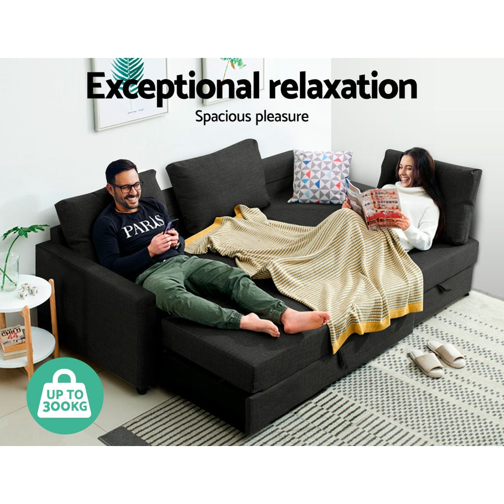 Artiss 3 Seater Sofa Bed Storage Corner Fabric Lounge Chaise Couch Charcoal