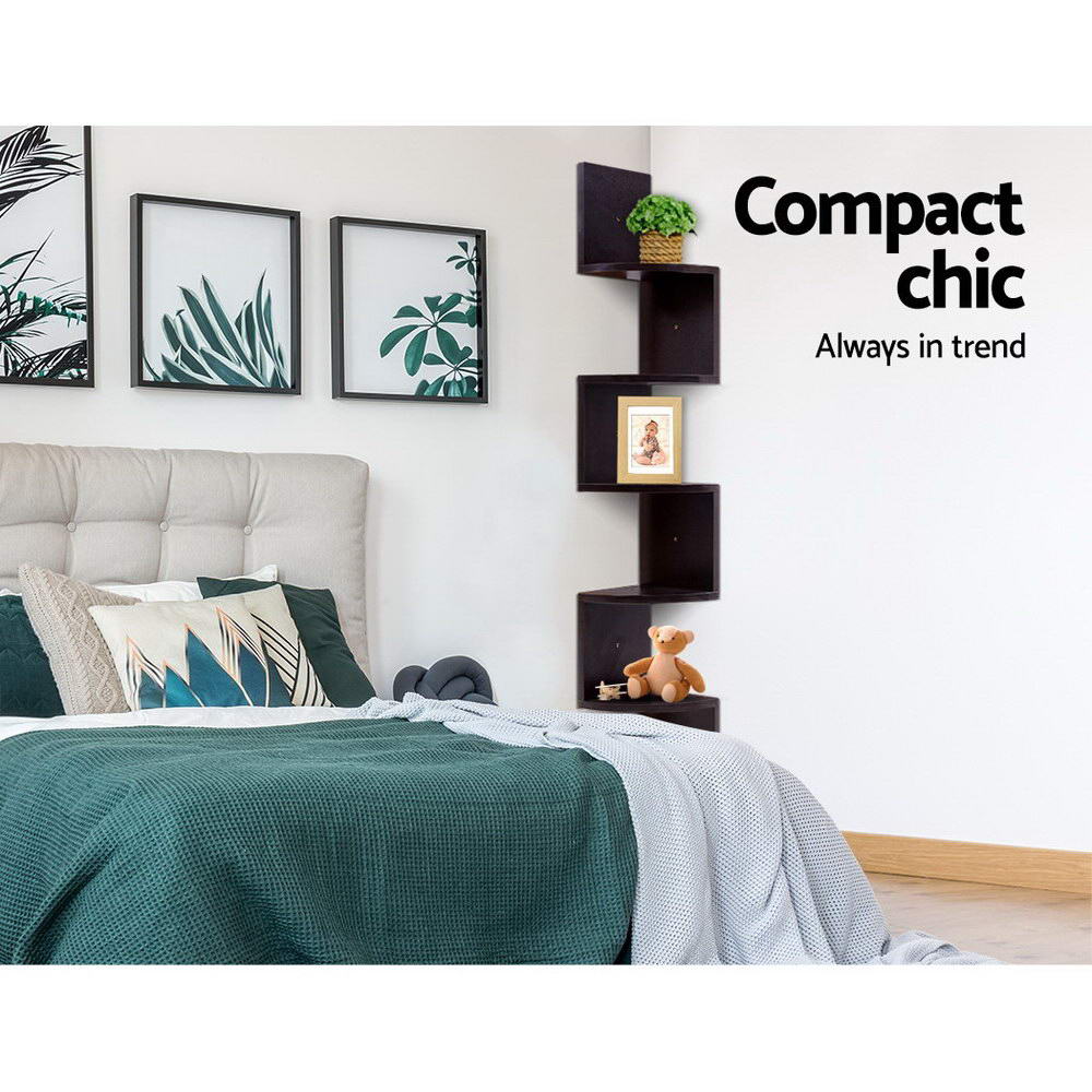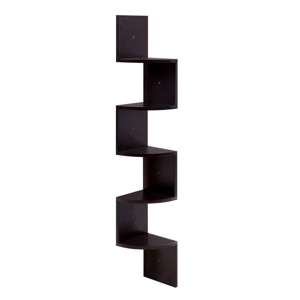NNEDSZ 5 Tier Corner Wall Floating Shelf Mount Display Bookshelf Rack Brown