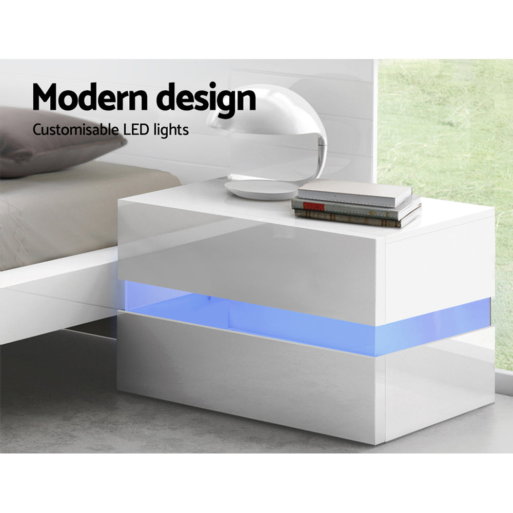 NNEDSZ Bedside Table 2 Drawers RGB LED Side Nightstand High Gloss Cabinet White