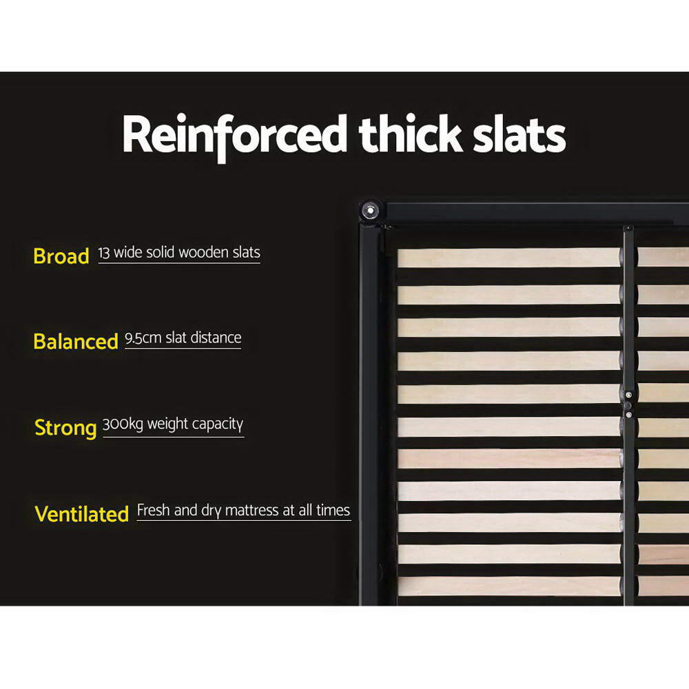 It is time to lie down and rest in total glamour and style. Beautifully padded with generous foam and covered in a faux linen fabric, this is the luxurious bed frame you all deserve. The elegant tufted headboard brings the prestige, whilst the strong steel frame with reinforced steel bars and a wooden arched slat base can put your mind at ease as you know you are sleeping on quality. One of the best qualities is the fact the bed frame has a gas lift which creates an instant storage area with ample space for you to hide away your items. This bed frame has brains and beauty!