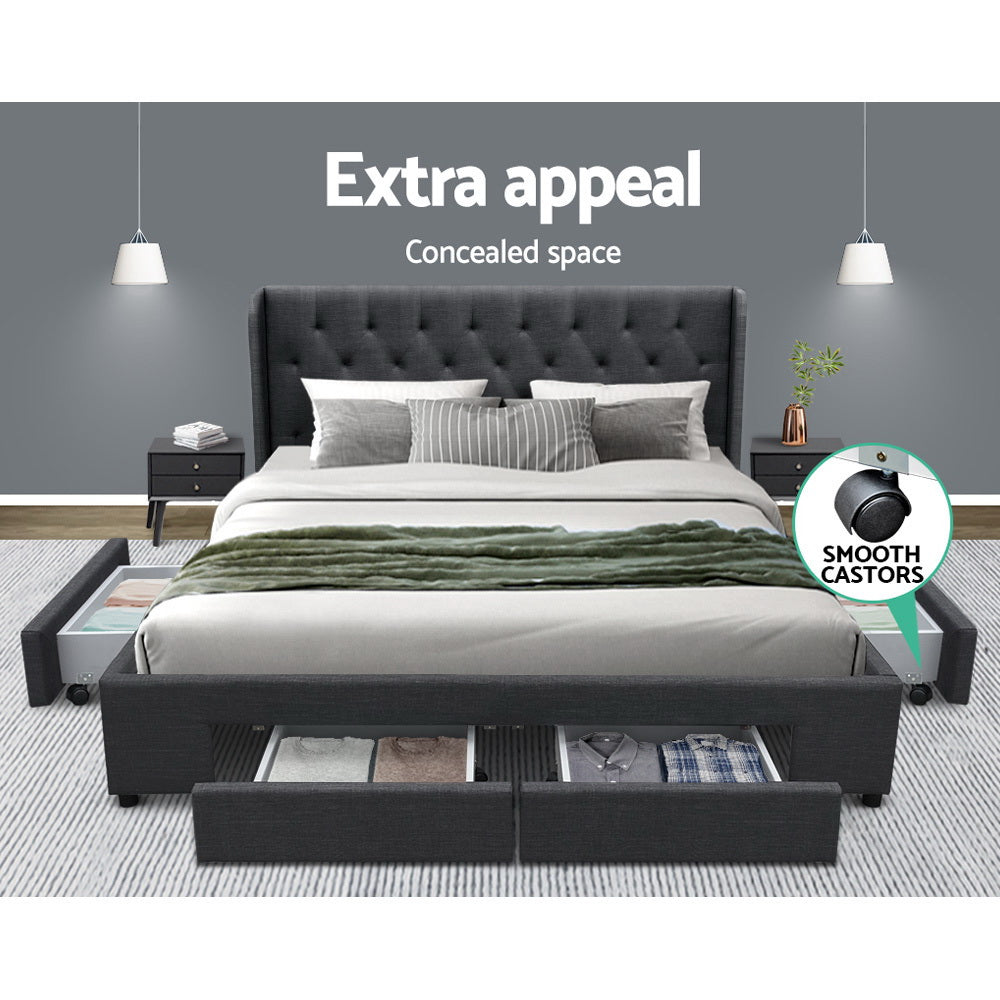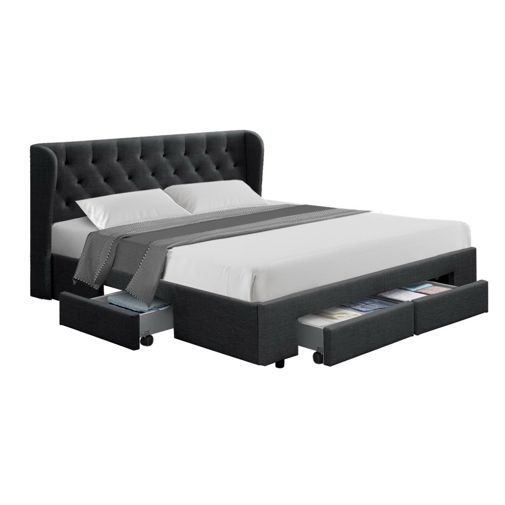 NNEDSZ Mila Bed Frame Storage Drawers Fabric - Charcoal King